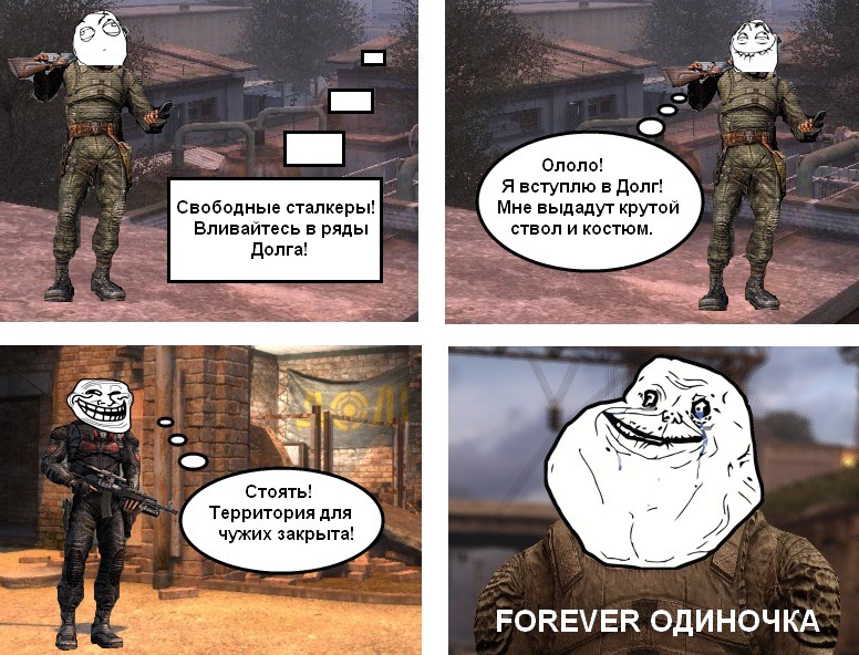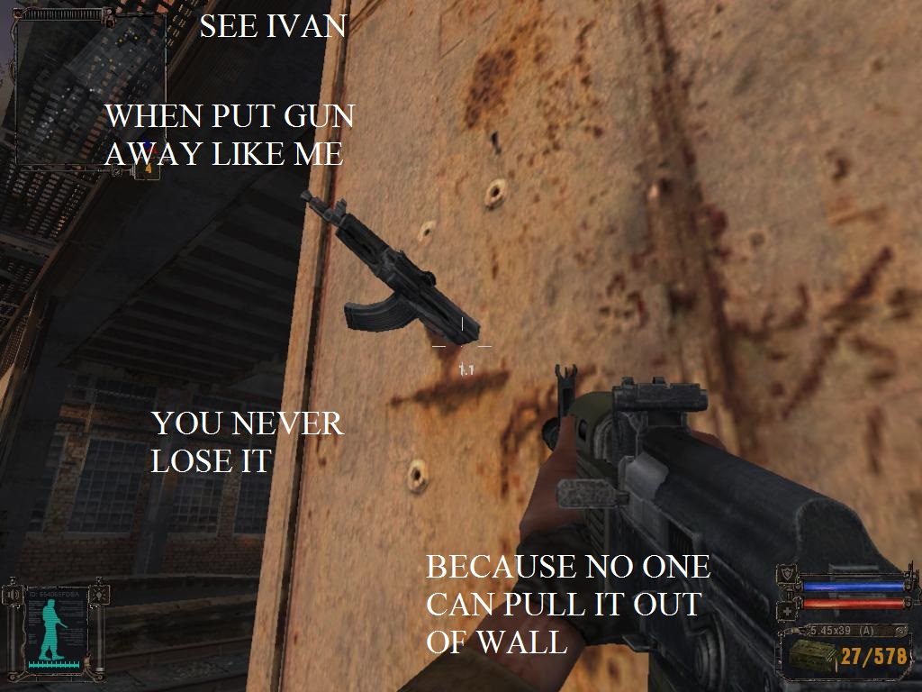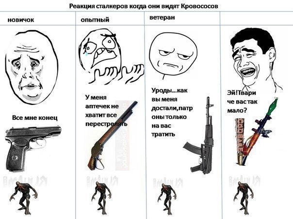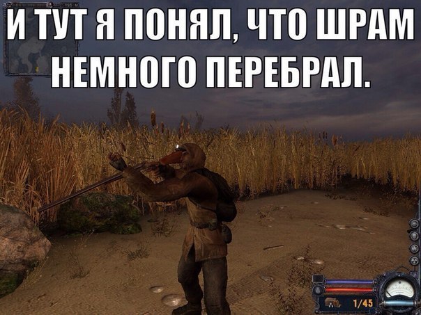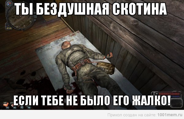 >>50082843 >Это когда всех поубивает, а потом новых наспавнится? А тебя не смущает среднее количество сталкеров которых убивает игрок за сюжет? >Где тут про: Допустим. Тогда я тебе набрасываю предъяву за еду. По твоему как сталкеры могут годами находится в Зоне не подыхая как один от авитаминоза и колбасных поносов? >Добро пожаловать в Зону Слишком толсто. Это не какой-нить фолаут или душный мод из майнкрафта. Один хрен что там что в модах на сталкера нету такого что жажда, ровно как и сытость сбалансированы в угоду игровому процессу. >А откуда она там возьмется? Из Иванково телепортировалась? Или из местных минеральных источников "Цезий-минерале"? Хорошо. Так а откуда ей взять по твоему? С собой приносят сталкеры, да?