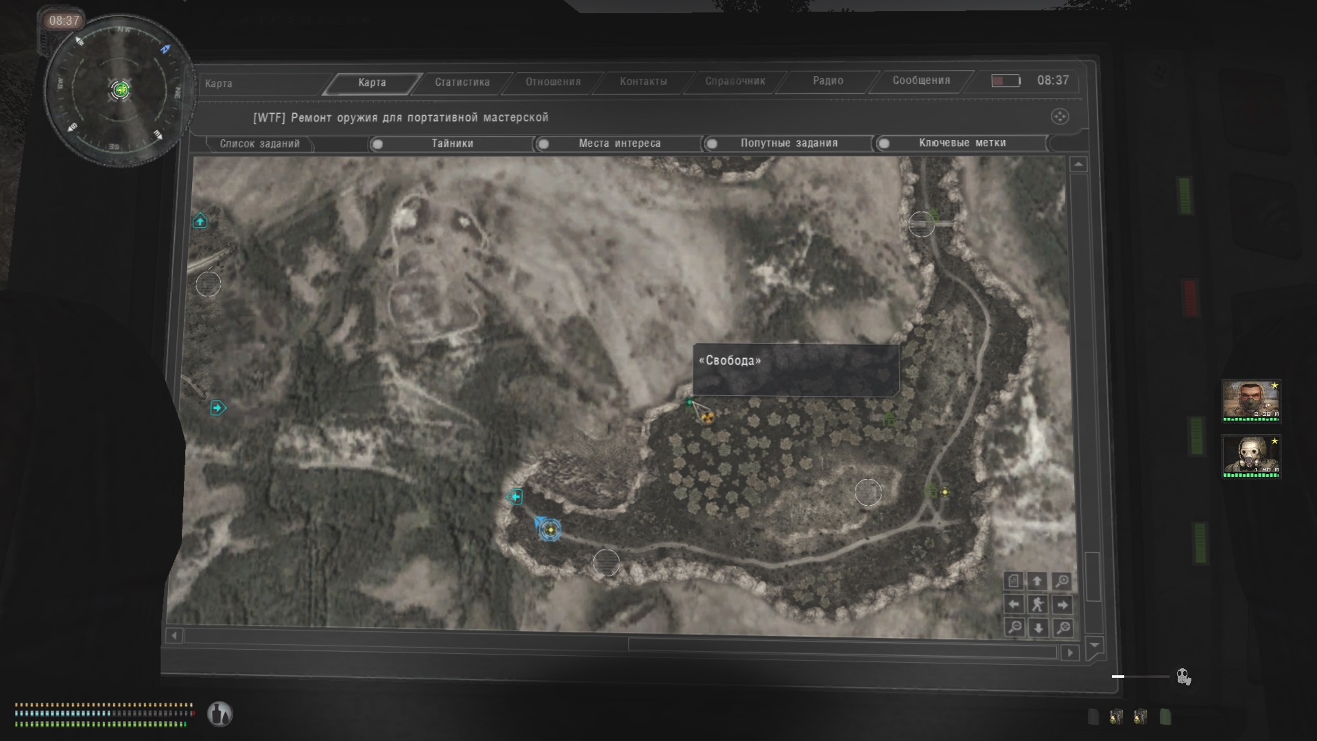 После небольшого перерыва продолжаю прохождение. Сходил за артефактом по наводке Галоша и таки связался по рации. Еще тут из интересного прокачка и адаптация интерфейса