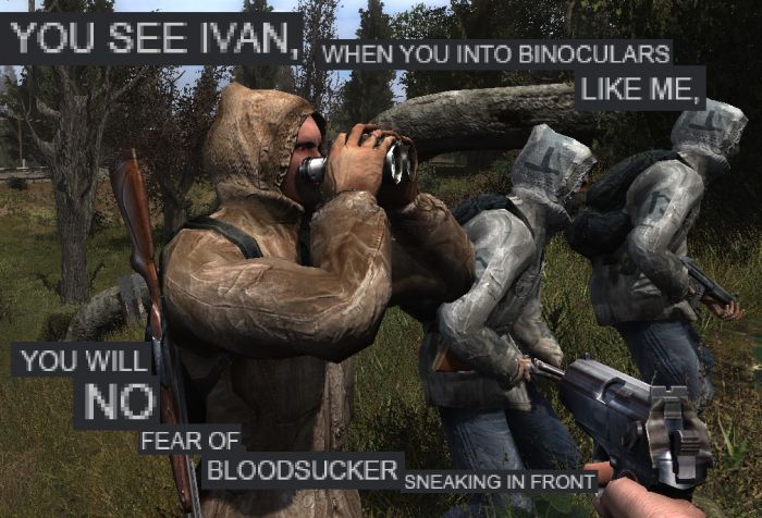 Ну, кстати, у Сталкера нет проблем с тем, чтобы объяснить небольшой угол обзора, просто все, кто не хочет потом собственные легкие откашливать, ходят в газмясках
