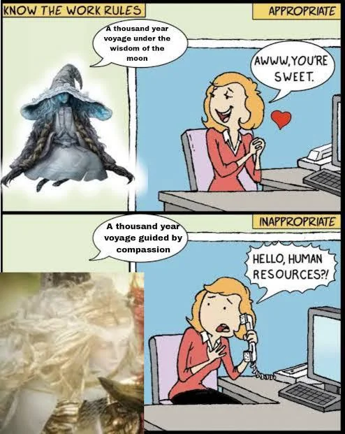 >>50072753 >и так и не понял, а что собственно там не так и от чего их нужно спасать? И Каэлида не видел, и орущих мертвых на столбах, и Рыбопринца под Столицей, и культ Трех Пальцев, и неофициальное дерево Микеллы, который, кстати, решил взять под полный майнд контроль вообще всех? >И что исправляется если глисту элдена дать пизды? Ну, как минимум, доступ к Кольцу Элдена aka Маричке получаешь, чтобы уже с его помощью дальше фиксить/не фиксить мир.