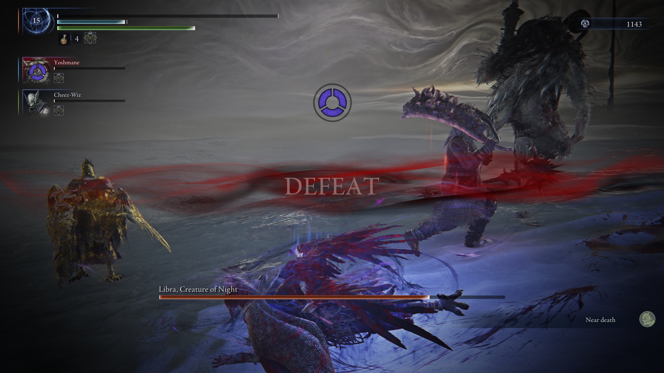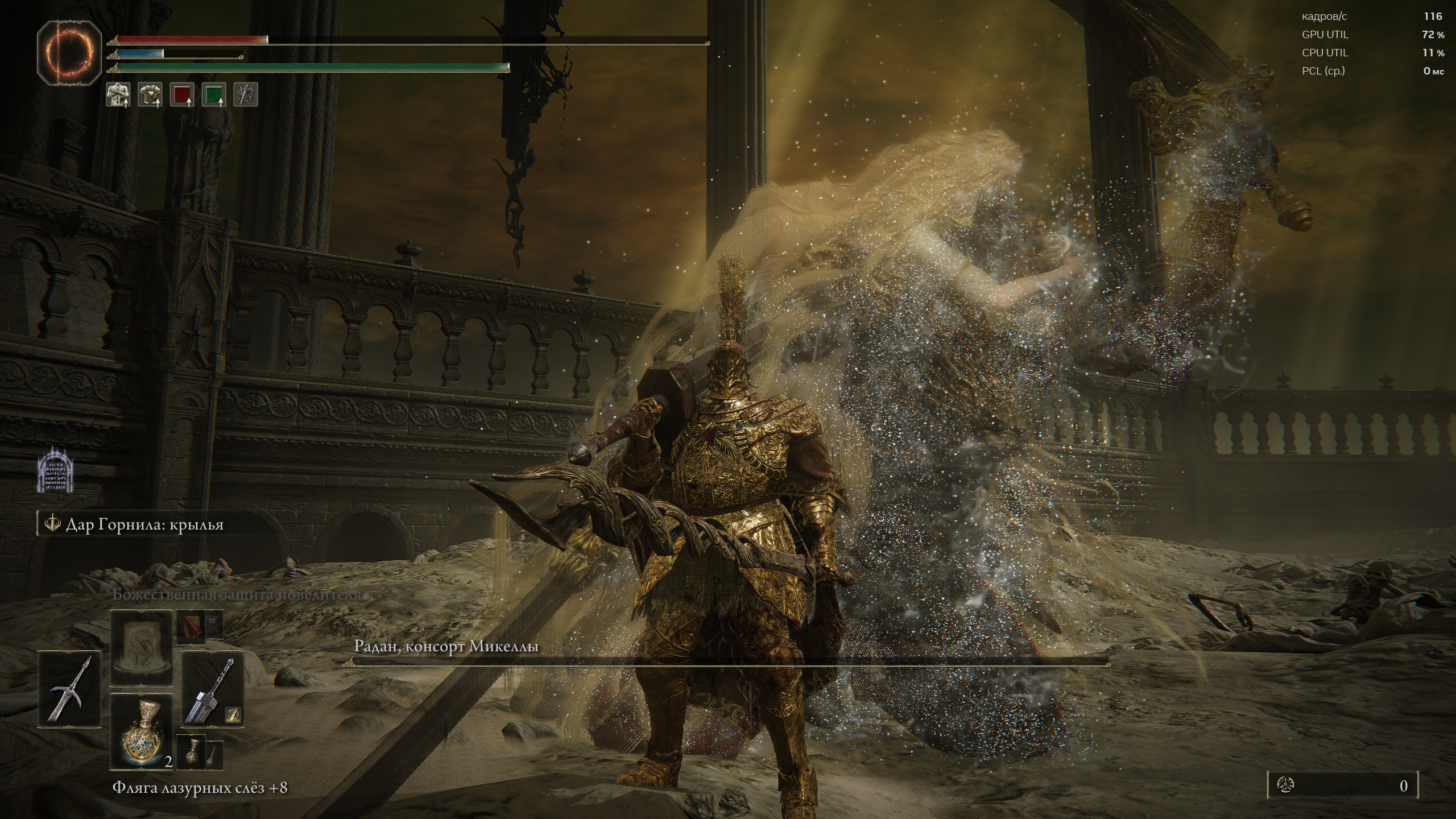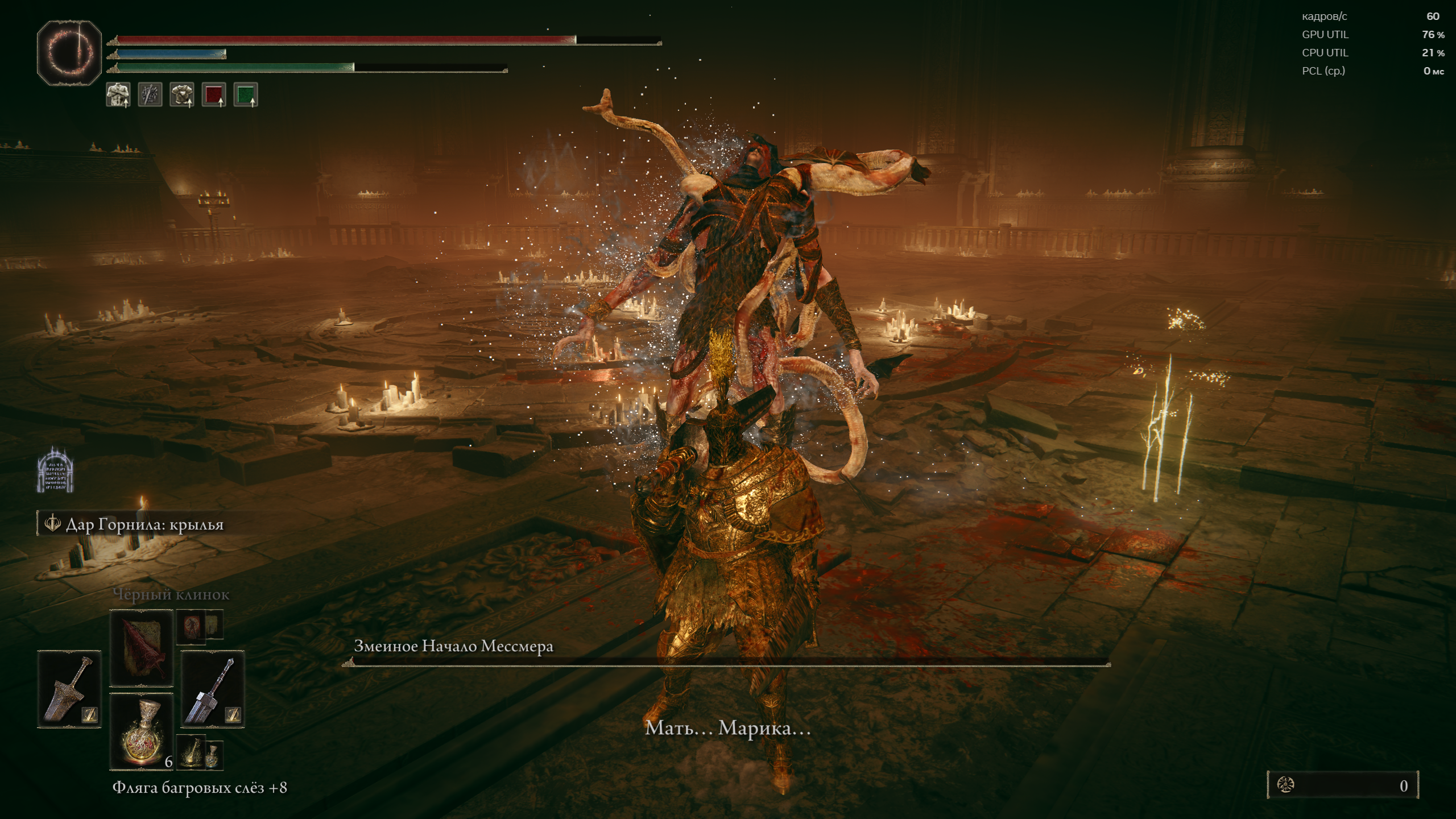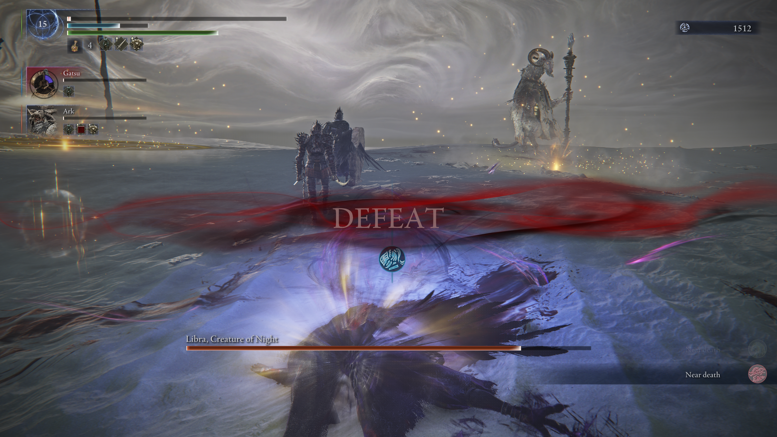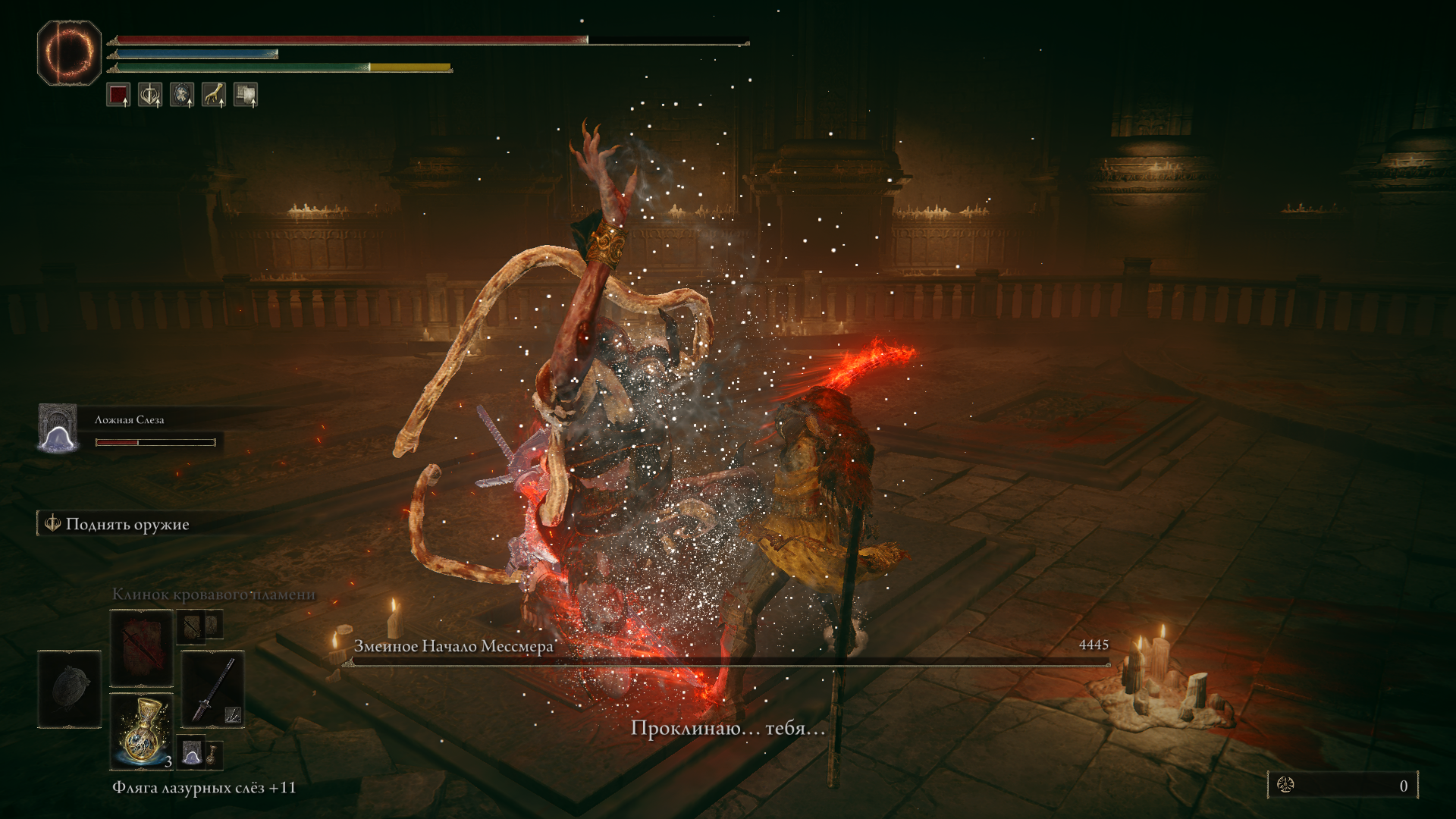 Это было неожиданно просто быстро, раз 5 умер на первой фазе пока попривык к его финтам, и раза 3-4 на второй, причем все разы от ваншотов. Справедливости ради его допинали дух и золотой челик, пока я катался от змеиных атак на 3/4 арены.. А вот как командира Кайа бить - так и не вдупляю, раз 15 уже умер, научился кое-как перекатываться сквозь его начальную чардж-атаку, но дальше он просто заебывает комбухами с пятиметровыми хитбоксами от двух ударов которых я отлетаю. Раза 4 доводил его до второй фазы, но там все еще печальнее с этими гравиколодцами.