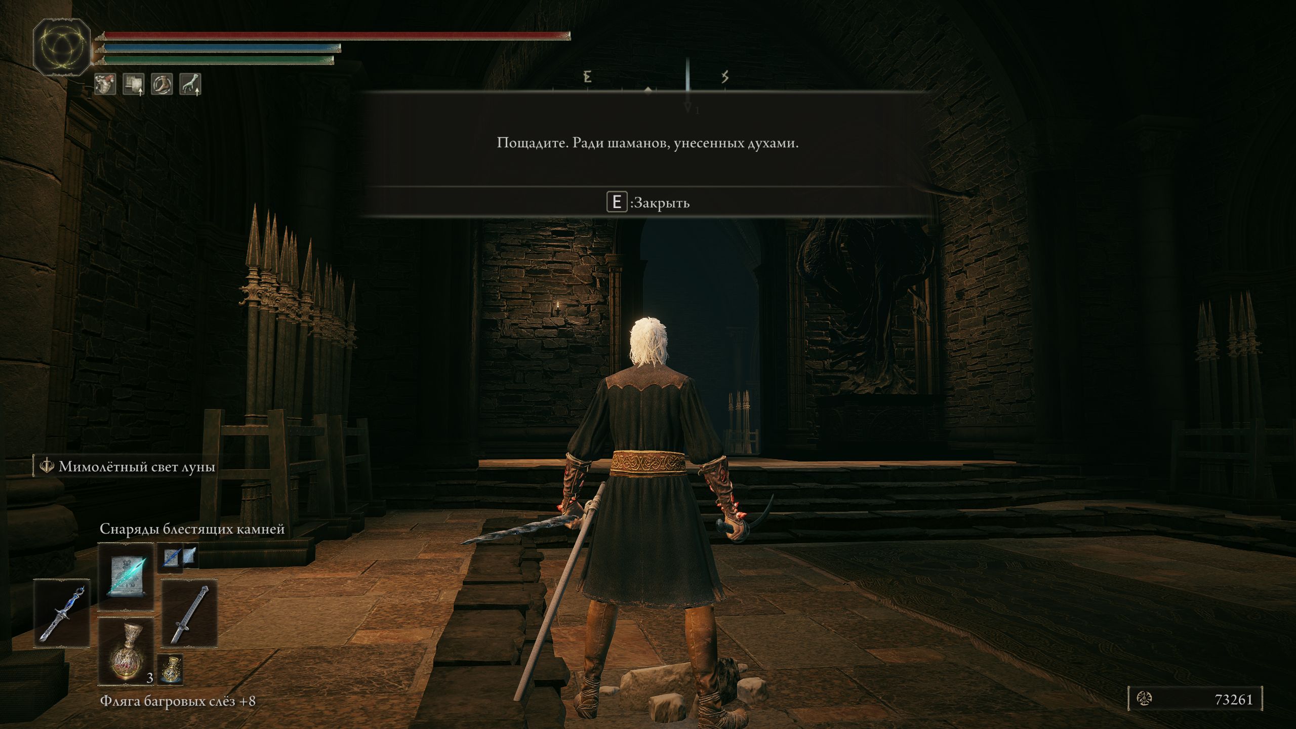 >>50118523 >Ну и что делать с этой дурындой? За первый вариант дадут её прах, за второй дадут меч ночи с недотанцем Малении на навыке. >был в Разломе, о котором анон говорил что это вторая точка невозврата, но там просто босс-скелетос в конце и убивающая диалогом фигня которая на десятый раз какую-то муть начинает говорить при твоей смерти Она тебе говорит идти ебнуть Микеллу, потому что без нее он даже не осознает, какой мразью становится. Вторая точка невозврата - сожжение дерева после Ромины. Сама Ромина - на северо-западе карты в руинах Рауха. >Я что-то упускаю, или там какой-нибудь подъеб вроде невидимого спуска или прыжка на 200 метров вниз без смертельного падения в ничем не обозначенном месте? Смотри >>50092154. В Пристанще Теней, недалеко от лифта в хранилище образцов, где еще знаки Леды и Роговеста были, есть лестница вниз, там за первым водопадом проход через иллюзорную стену.