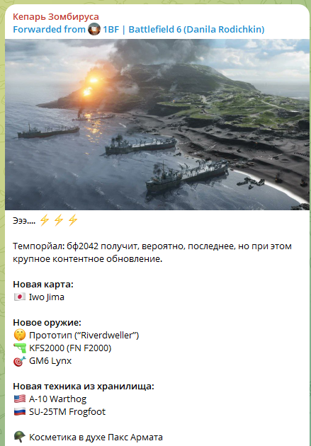 >>50114078 >Бумеры хотят как в Bad Company 2, Battlefield V, Battlefield 3. Поправил тебя. Хочу разрушения на картах как в бк2. Хочу физику вертолетов как в БФ3. Хочу физику авиации как в БФ5, также нужна система позволяющая командиру покупать за очки отряда разные тактические уловки. В бф6 у командира никакой роли нет. Надеюсь они хотя бы ремейк карты из 2042 перенесут в шестерку.