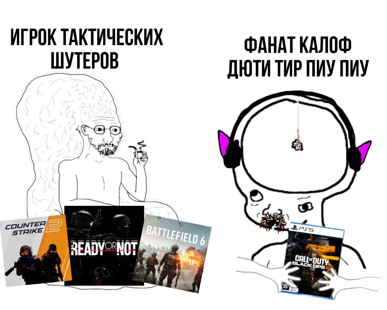 >>50114175 Я ни разу не играл ни в один кал оф дути ни разу в жизни. Из шутанов играл в кс (у меня там много часов), пабг. Больше 10-и лет назад много играл в бф 3 и бф 4. Все что было между бф 4 и бф 6 скипнул.