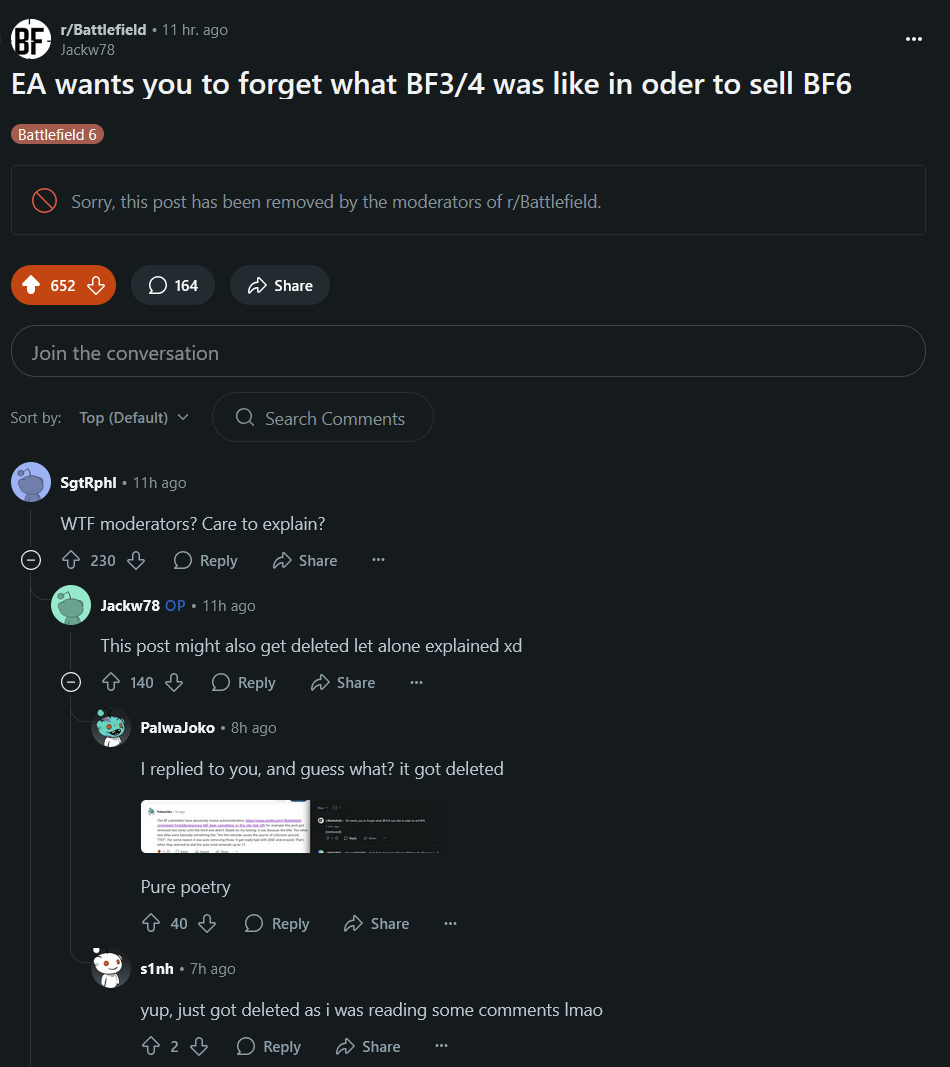 Battlefield 6 стоит предзаказать только уже потому, что нищих вытиранов старых частей тупо обоссали и перестали слушать, теперь игра расчитана на молодую, платежеспособную ЦА и это БАЗА