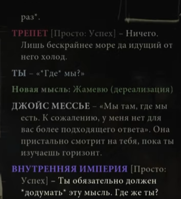 Ты в диско элизиуме с какой-нибудь резчицой игральных костей пол часа пиздишь, лол. С рандомной девочкой на улице минут 15. Весь пиздеж с ними ничего не раскрывает и никак историю не дополняют. Когда та же история про Игнуса/Даккона напрямую с тобой и твоим прошлым связана, или контекст бесконечной войны объясняемых демоном из бара, с этим явлением ты напрямую будешь взаимодействовать на одном из планов и в финале, если остался жив, пойдешь туда отрабатывать.