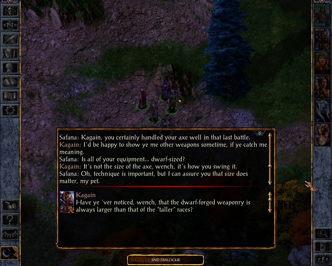 Пиздос, у меня в подземелье под мостом поменялся пол из-за волны местной дикой магии. После отдыха пол вернулся, но ко мне теперь спутники подкатывают. Я теперь даже не пойму, это мне пол обратно не вернулся где-то в переменной (на картинке я мужик) или это спутник баганул.