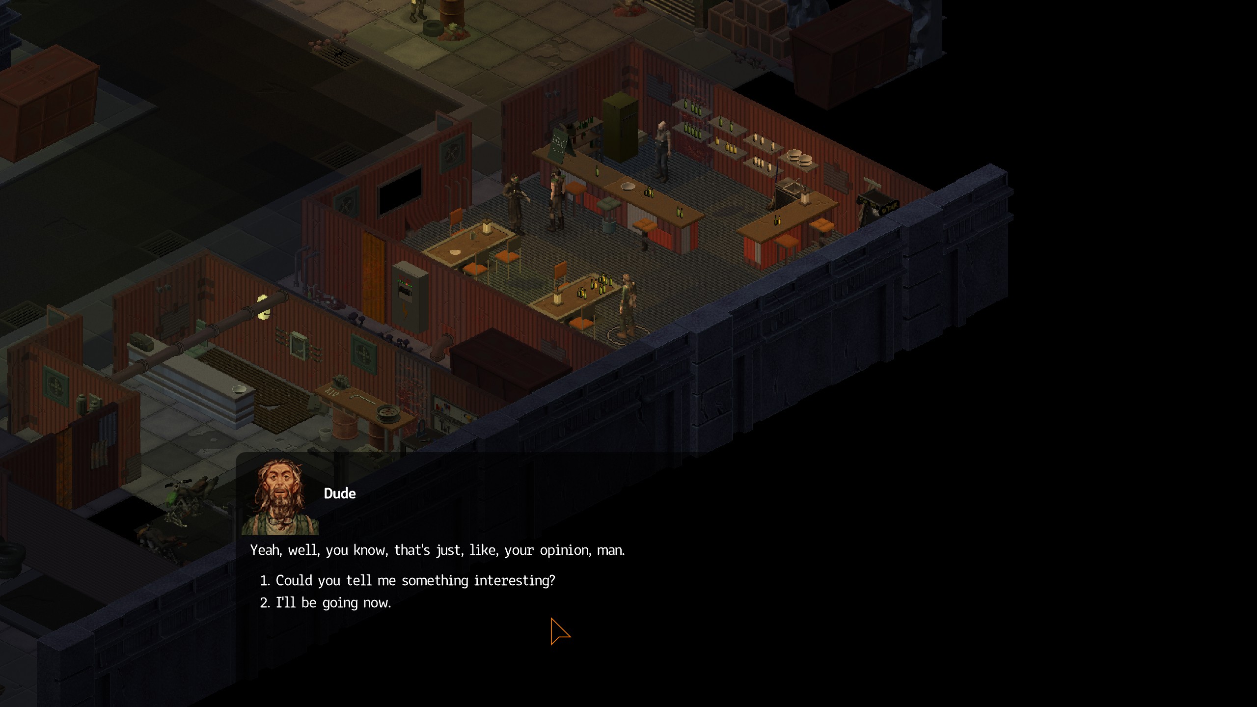 >В Дискаче огромные диалоги выдаются в виде исключения и почти всегда касаются основного сюжета, вроде диалога с главой профсоюзов или диалогов с подозреваемыми. В Планетке каждый бомж норовит насрать хуйни на десять минут. Ты приходишь в бар с игнусом или в бордель и тебе кажется, что текст никогда не закончится.