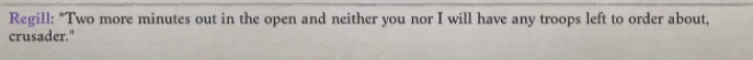 >>50117359 Регилл местами адекватный когда его ставят на фоне других тупых персонажей вроде орчихи паладишни (как же она бесит сука своими соплями), но в целом у него очень много Lawful Stupid моментов когда он несет и предлагает полнейшую хуету просто потому что он ЗАКОНОПОСЛУШНЫЙ.