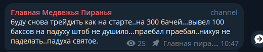 >главная медвежья пиранья но ведь ареныч это главный медвежий мопс маленькая собачка которая пытается выебать ногу крипторынка периодически получая пинки и улетая на минус стописят баксов