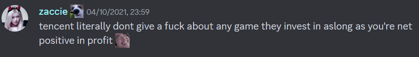 >>50117523 >positive in profit 1 жирно 2 конечно дело в профите а не в тотальном контроле рынка всего азиатского региона тенсент давно стал 2 блекрок и писькомер у сверхбогачей измеряется не бабками а влиянием