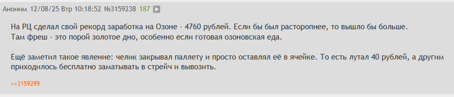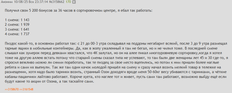 >>50118777 ой не душни бля нахуя мне открывать тред нытиков если я лично на озоне работал в 2024 году причем не в ДС а 1350 от мкад в рандомном миллионнике(краснодар) чтоб там 4000 не заработать за 12 часов надо не знаю че делать например нихуя не делать попробуй поработать челы задроты склада которые очень быстро пикают и 10к руб в день делают