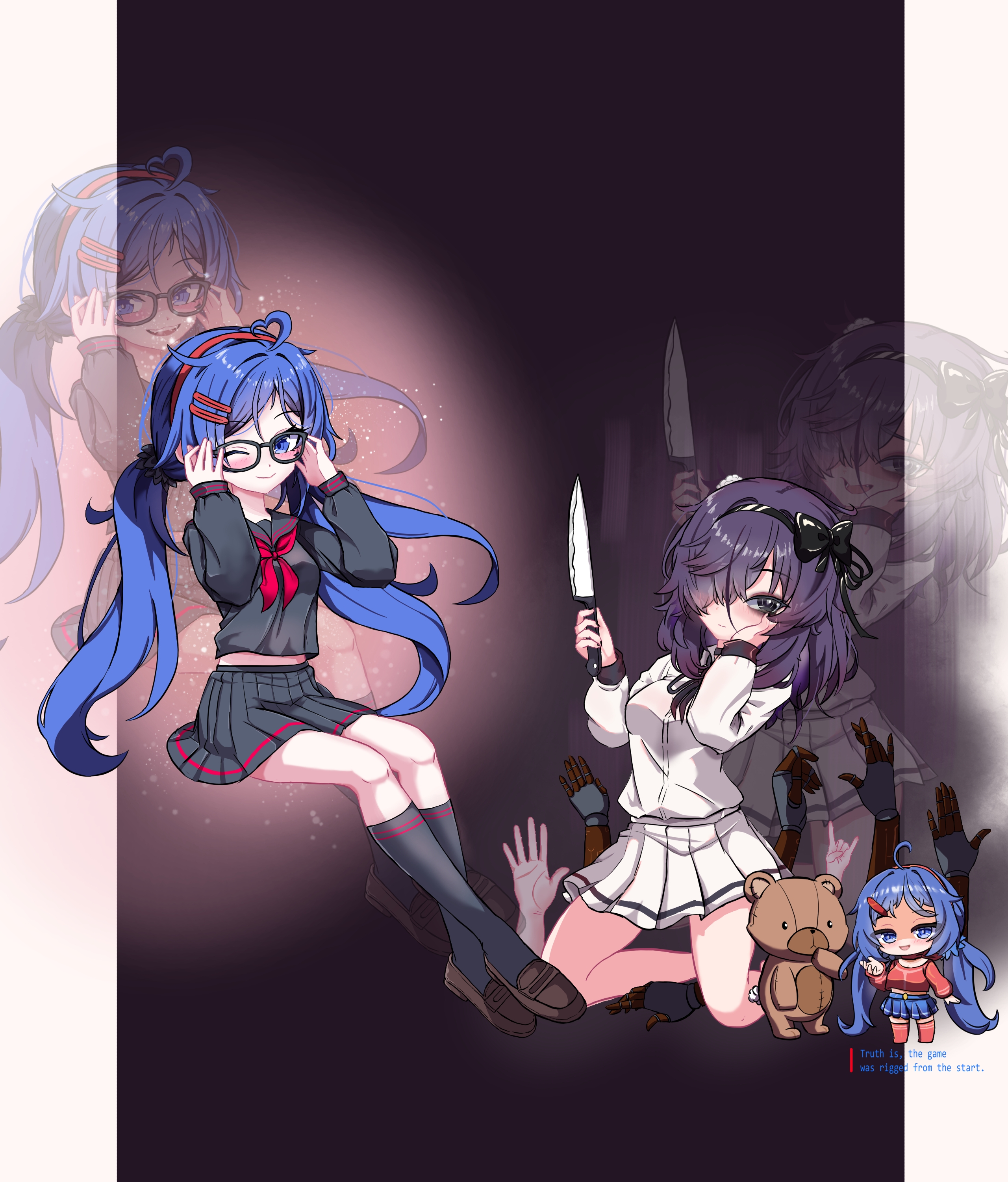 Если это просто отсылка то где правда - хз может быть мита с косами все это подстроила создала виртуальный мир, бант же как то в своей версии тоже коридоры растягивала и тоже с целью попужать. и 1.9 это действительно ее версия, а добрая мита тогда вообще непонятно.