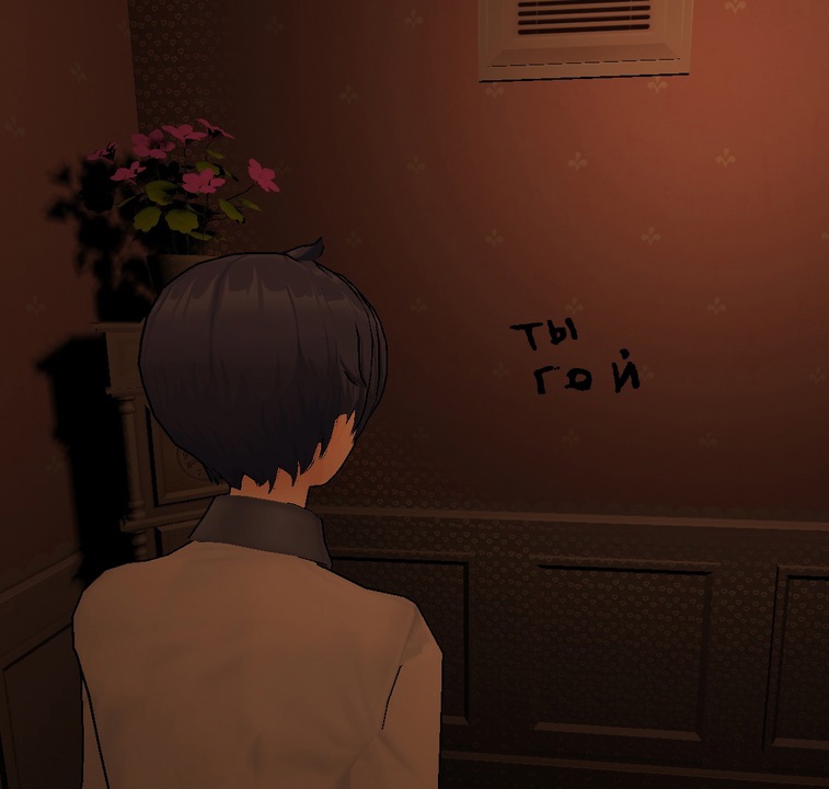 Получается, что все надписи на стенах делает короткостриженная Мита, и она же нас всячески пугает при самом первом же попадании в игру, в ее версию (то, что мы именно в ее версии доказывает множество фотографий Миты именно с короткими волосами). Но вот только зачем нас пугать, неужели короткостриженная Мита нас так же ненавидит, как и Безумная? Ничего в игре не намекает на ее игривость/шаловливость.