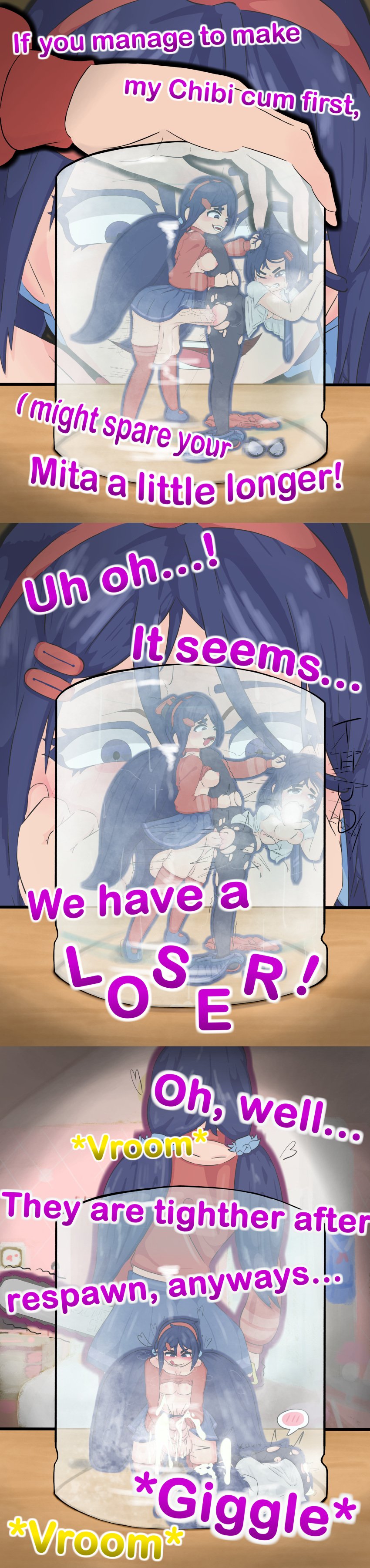 Eclipse: Тогда почему она говорит что гг уже виделся с её "сестрёнкой"? Мы не встречали чибиков до этого, значит сестрёнка – это Мита, Мы видели только Добрую, Безумную, Кепочку и Маленькую, неужели это Маленькая? youmэrai: [...] но она имеет в виду любую Миту, так что спок