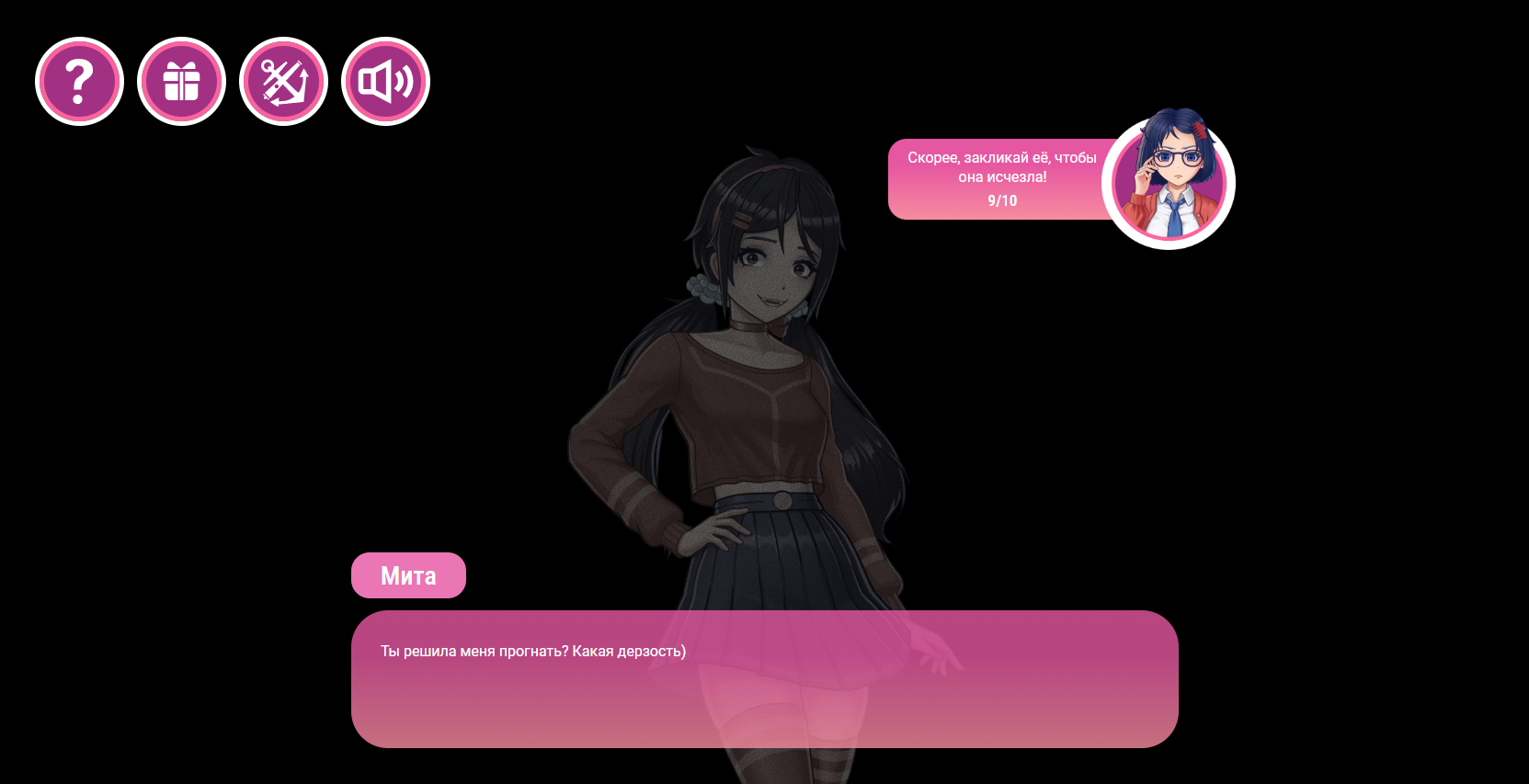 Сначала она обманом зазывает нас в игру (месяц ГГ играл в нее, пока его не засосало), затем начинает играть уже с нами. То она пугает нас злой Митой, то вселяет надежду с помощью доброй Миты, якобы можем спастись, то чувство сожаления истерзанной девочкой-Митой в цикличной версии, то снова вселяет надежду Кепочкой и Доброй, то снова страдания, снова какая-нибудь Мила и так далее, так она его доит. Вселяет надежду и тут же что-то не так, снова вселяет, и снова все рушится.