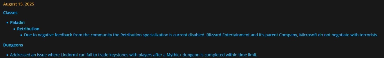 В свете последних событий по мирному урегулированию украинского кризиса в виде личных переговоров российской и американской делегаций, возглавляемых непосредственно президентом Российской Федерации Владимиром Владимировичем Путиным и президентом Соединённых Штатов Америки Дональдом Джоном Трампом, с учетом внешнего санкционного давления со стороны Соединенных Штатов Америки, а также личных ограничений, введенных непосредственно компанией Blizzard Entertainment по их собственной инициативе, консилиумом российских игроков в игру World of Warcraft от компании Blizzard Entertainment на сайте "2ch.hk", борды "/vg/", треда "/wowg/", был сформулирован ряд требований по налаживанию отношений между российским сообществом игры World of Warcraft и американской компанией Blizzard Entertainment в составе транснациональной компании Microsoft.