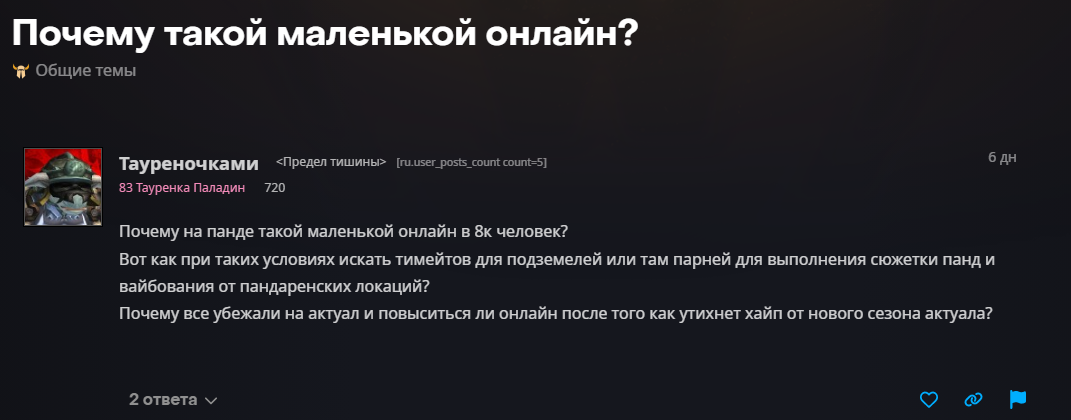 Как же хочется в вовис поиграть, аж трясет. Раньше в пиратку, минут 40 поигрунькать, на бг или лфг, отпускало как-то. Но в последнее время прям руки чешутся. Там ведь триал до 20 уровня бесплатный?