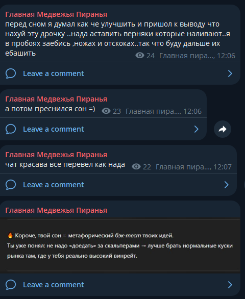 раньше постили размеренно с шутками в такт что выливалось в прекрасную мелодию постинга а сейчас сема тупо вайпает трейд культуру просрали такую просто больно на это смотреть