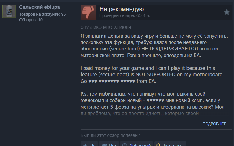 «Игра не плохая, но в таком виде я не хочу продолжать играть», — пишет BookkeeperPercival.