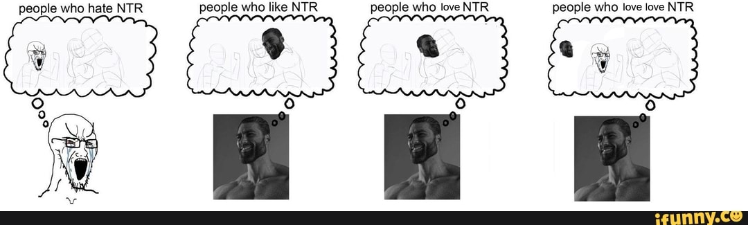 На деле все много проще: это просто наблюдение за похождениями шлюхи, которую все пользуют налево и направо. Т.е. главное в нтр не кун-куколд, а тян-шлюха. (Это роднит игры жанра с играми "female protagonist+corruption+etc"). Чмошник-куколд же тупо как катализатор для подчеркивания шлюховатости героини.