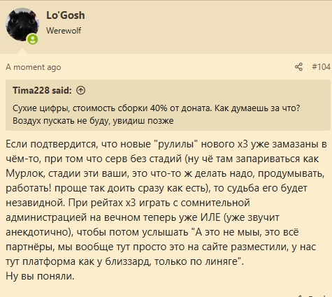 ил приемлемые хроники, на старте будем видеть засирание тредов скринами онлайна и почти сразу обмякание, через год там будет очередной мертвый ковш эра или любая другая болотнохрючная хуета