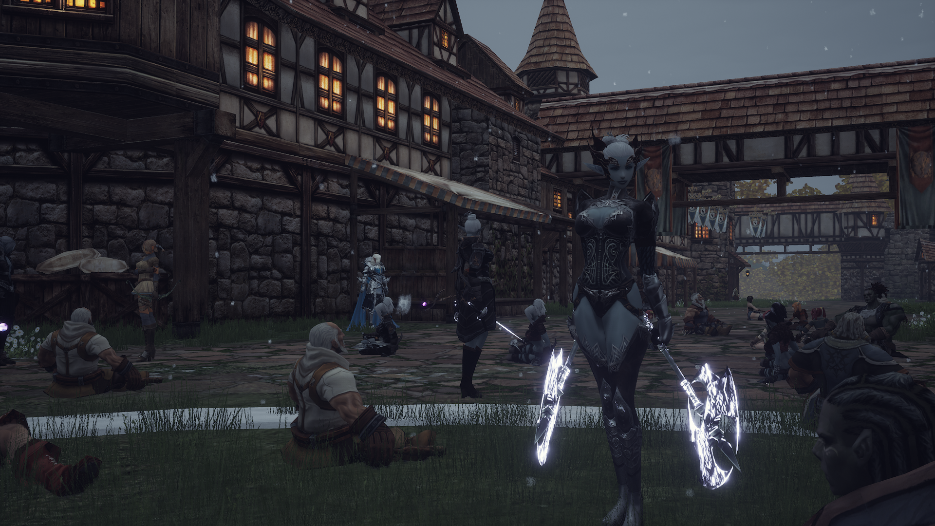 Короче таки зашел на луч глянуть что это. Капец впечатления НЕОДНОЗНАЧНЫЕ. Местами графон прям очень хорош а местами говно хуже оригинала. Ну вот например модельки персонажей кажется не сильно отличаются от оригинала, текстуры в городе тоже не сказать бы что далеко ушли от оригинала, но вот свет/тени и растительность охуенные. Особенно я офигел когда дерево ПА ФИЗИКЕ начала отбрасывать огромную тень вот это прям реально выглядит круто мне кажется даже в дерьмаке 3 такого не было. Постоянно качающиеся деревья и метель в деревне гномов тоже смотрят очень круто. Прям конкретная метель. Гномы живут в очень суровом месте. но скришот даже близк не передает этого ощущения тут надо в динамике смотреть. Тражения/вода тоже все четко. Офигел кстати от обилия растительности повсюду. Прибежал на грибочки у темных эльфов а там гребаные джунгли. Но есть и минусы в графоне. Очень странная контрастность. Все какое-то темное. Ладно дроп на земле плохо видно это они решили тем что значительно увеличили ренж действия кнопки пикапа. Но даже модельки игроков сливаются с растительность и мобами. Со мной рядом тело бегало фармило я его постоянно с мобом путал. Все какое-то пиздец темное. А вот оружие выглядит очень ВСРАТО. Какие-то серебряные блестяшки. Что касается онлайна конкретно на РЕДе он не велик. Количество людей в нубо локах не велико(но справедливости ради тут тп для ньюбов бесплатное и возможно все ходят в какие-то козырные места а не фармят у своих деревнях. Количество торговцев в гиране меньше чем на реборне х50. В дионе чуть меньше торговцев чем на реборновской сигнаурке х1. Я бы сказал если тут 2к онлайна то на реборне +-3к.