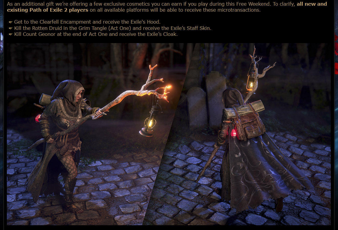 Play Path of Exile 2: The Third Edict for free this weekend starting from August 29 (PDT) to earn three free cosmetics! Check them out in the video below, and find full details on the Free Weekend here: http://pathofexile2.com/freeweekend