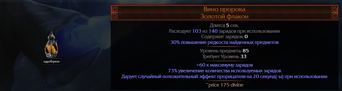 да кал эта фласка я на плутике ее потестил помню и в итоге тинктуру вернул хз че она у вас на голубом флажке столько стоит на великом хардкоре за 30-50д всасывалась всю лигу