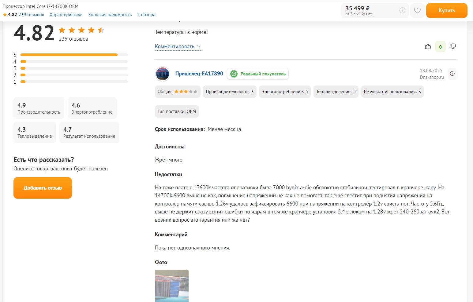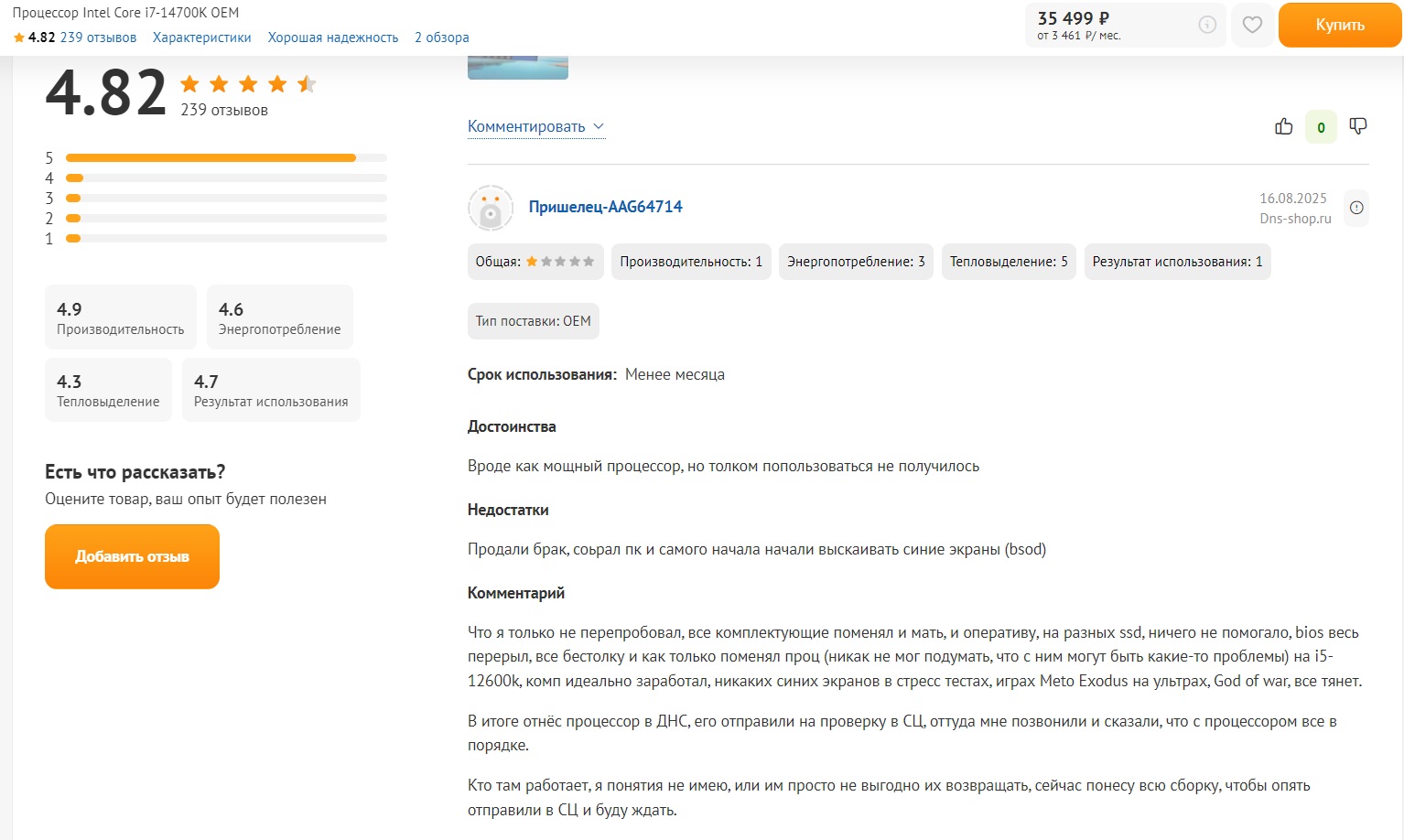 >половина брака >проблема в самосборщиках я бы еще понял что проблема в днс и тем откуда они закупают кал но неиронично хрукать что в отзывах с уже погнутыми ножками соскета виноваты сами покупатели это какой то невероятный уровень захиста