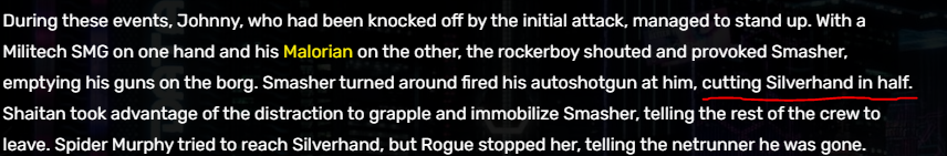 >>50164917 > в 2.3 обещали Где? Ты это сам себе выдумал? Ссылочку на РТ, где официальное лицо СДПР говорит это всё, пожалуйста Напридумают себе хуйни и носятся с ней >>50165241 Момент, где Ви и Джонни говорят хором - охуенен, побольше бы такого