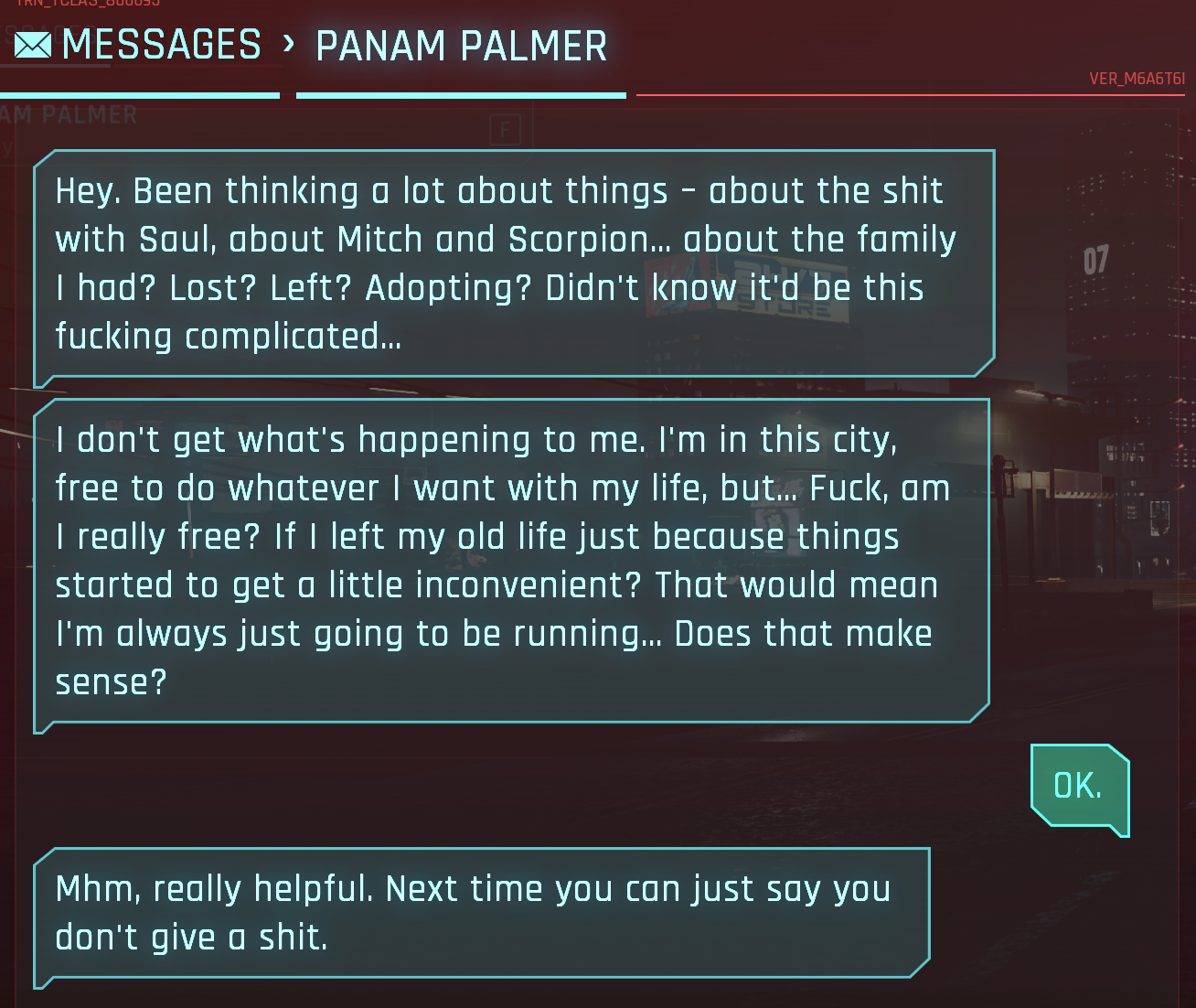 Пиздец у пшеков с балансом конечно дружбы нихуя нет. Что в ведьмаке на высочайшей сложности всё просто у упираешься в потолок лвл уже к середине, что здесь блять я фармил задания фиксеров и заработал 50 уровень 50 репутации уже к середине игры, когда я даже не начинал доставлять хельмана и вот это всё. И риперы, тоже пиздец, я помню до версии 2.0. чем пизже рипер и в чем лучшей локации он находится, соответственно он ставит более хорошие модификации. А сейчас даже обоссанец из трущоб предлагает милитеховские разработки за 120 тысяч денег. Я ебал просто