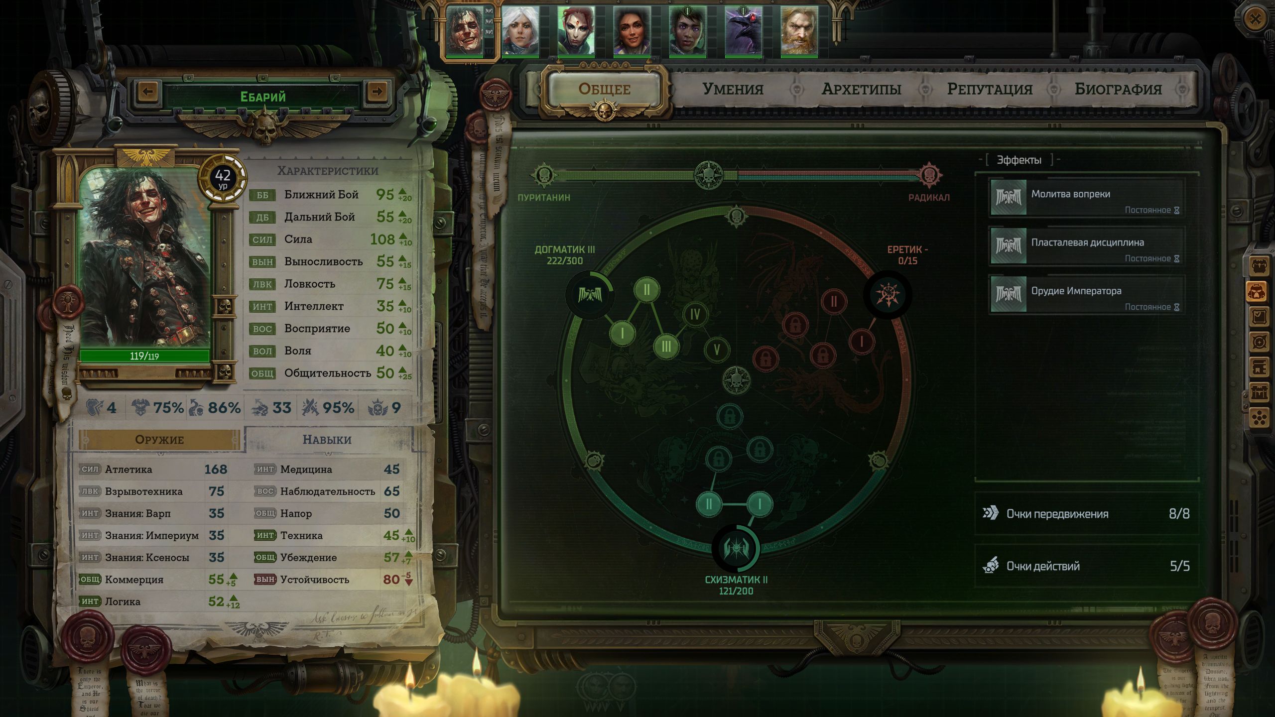 А ну еще клир с переводом убеждения на мудрость или оракул хорошие кандидаты под демонстрацию силы и корнугонский + жестокий удар. Все равно попадать по врагам вторичными атаками они не будут, а так хоть пробрасывать -мораль под пролом защиты у других дамагеров будут и какой-то дамаг с жестокого удара...