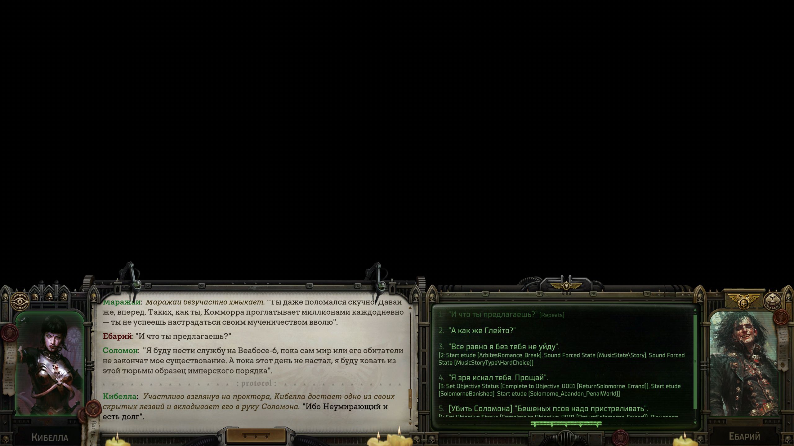 >>50159834 Сломанный сервитор. Это баба с одного из имперских кораблей, уоторый ограбил Денз. Он убил ее семью на глазах, и она почти натянула Денза в бою, за что он сделал ее сервитором. Рут с поиском настоящего фиделио стартует если ты в начале квеста честно говоришь, что ты - не он.