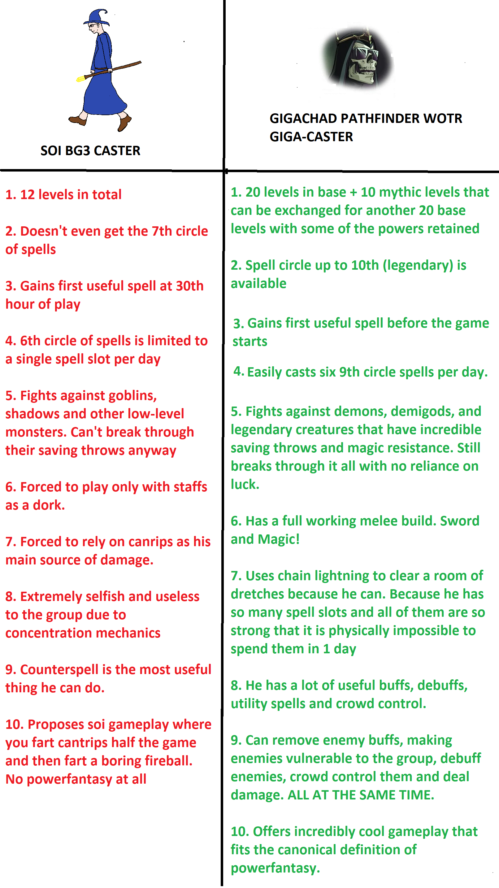 >>50172540 > Ты в него играл вобще Да. Три раза. И у меня 8 гигабутов криншотов из него. И в твои любимые бочки кала тоже играл - высер редкостный. > он еще более сломаный Мань, фика в том что ВОТР нужно ломать об колено. Нужно придумывать билд, нужно создавать функционирующую систему, нужно разрабатывать продуманную структуру своего билда, чтобы он преодолел игру. Потому что если ты делаешь хуевый билд - ты не пройдёшь анфейр. И хороший билд требует продуманного понимания взаимодействия фитов, бафов, абилок и всё это помноженное на напарников в группе от которых ты так же зависишь.