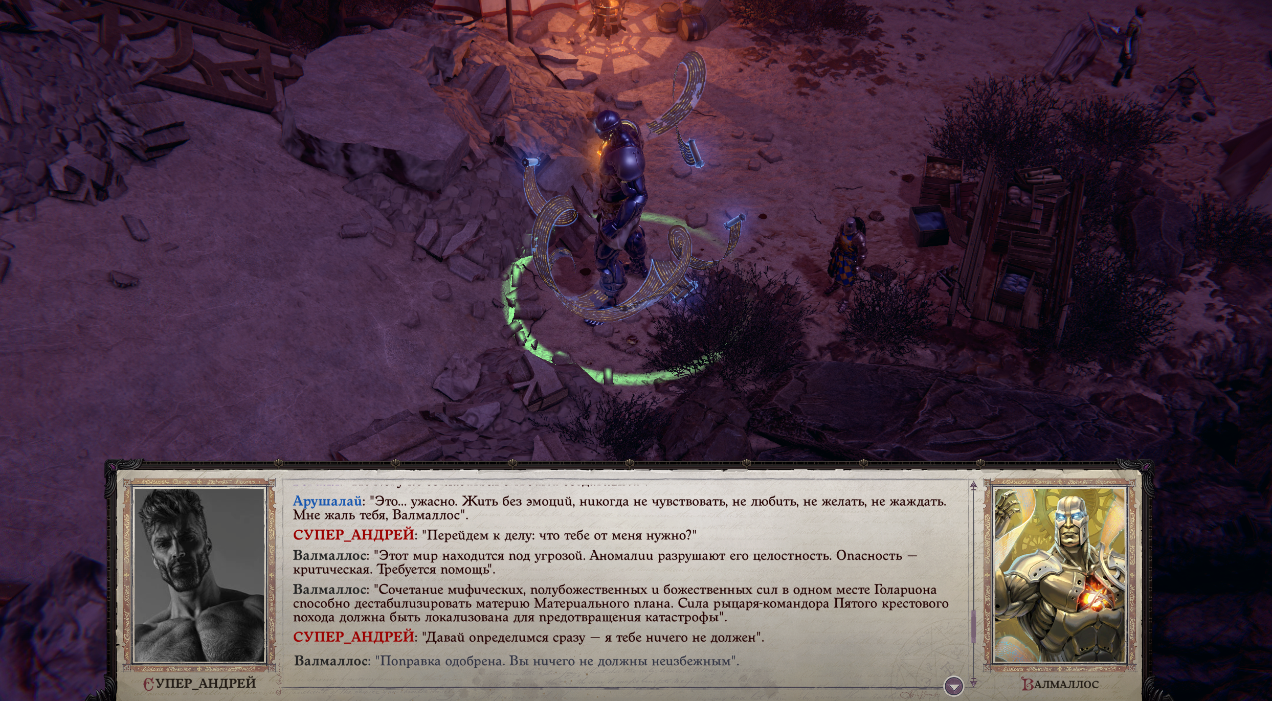 >>50160180 Ну честно скажу, что мне рт больше, чем пф понравился намного. Вотр меня хватило на одно прохождение, и то даже не до конца. Подзадушило, и дело не в сложности, а в большом количестве фитов, которые на тебя выкидывают, и чтоб собрать что-то рабочее, нужно уж очень много времени потратить. В роге в этом плане почеловечнее, прокачка меньше времени занимает намного. Да и по сеттингу больше зашел рт, я с него в ваху и вкатился, можно сказать. Особенно доставило, как я по привычке хотел добряка отыгрывать, но после того, как с Райкады демоны полезли, а эльдары Янус под себя подмяли, ушел в догму и больше не пытался схизматиком там быть. Хотя отзывов о пф в плане вариативности отыгрыша куча, что меня и привлекло. Можете даже говном закидать, но мне пилларсы и тирания больше зашли, чем пф. Больше зацепил и лор, и сюжет. Но я не считаю пф калом. Просто не моя игра.