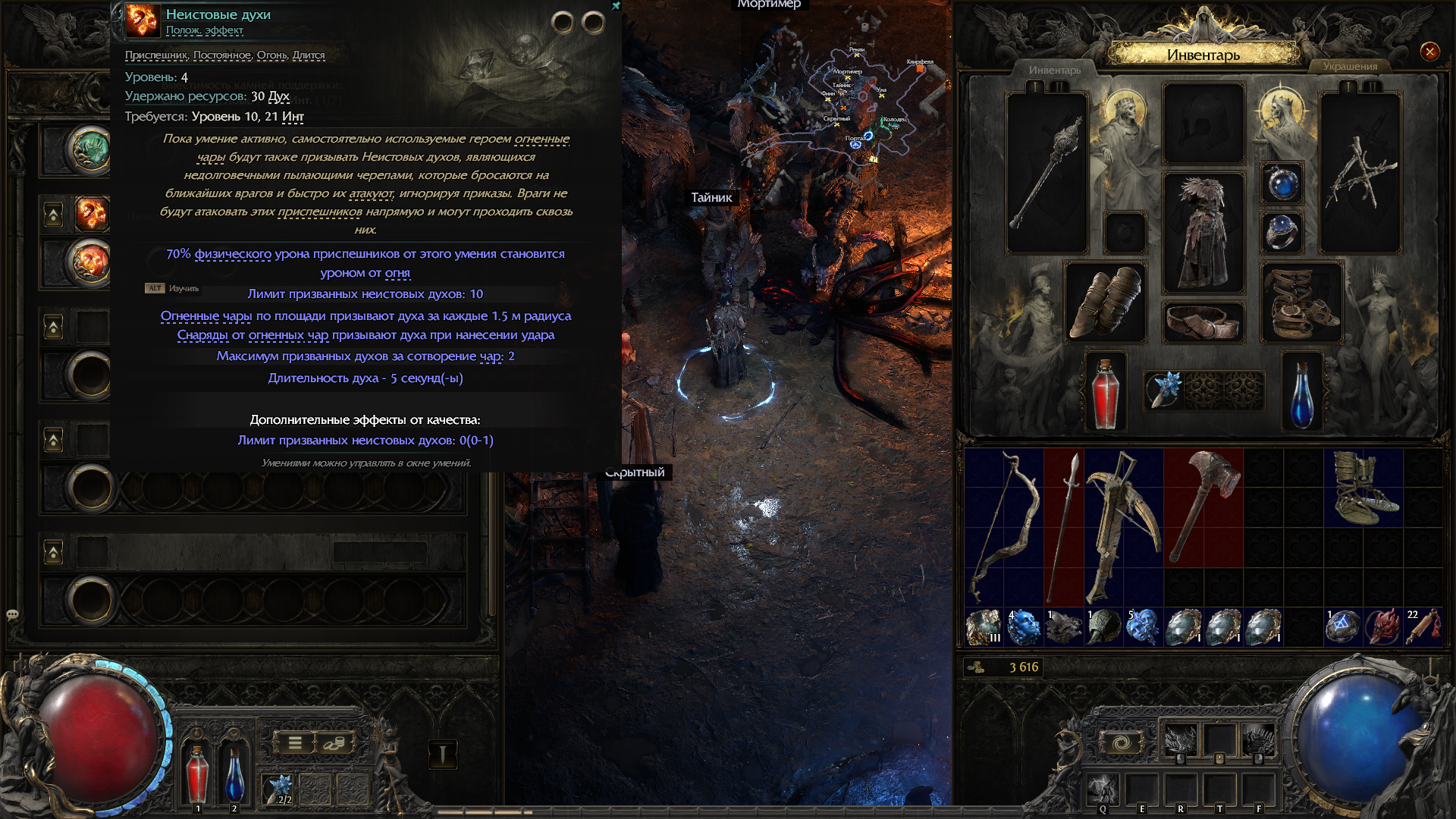 Ну вот и всё, я прошел третий акт и достиг четвертого. https://youtu.be/1WrfiUGAmCU Четвертый уже пройти, наверное, не успею. В конце выпал пиздатый красивый наряд, а то всю игру в лохмотьях бегал. В нем даже сиськи колышутся при движении или повороте. Накопил всякого. В других вкладках еще оранжевые шмотки разные. В целом игра заебись, лучше 1 части. С самого начала выдали и скелетов и пиздатый скилл который из трупов плодит, нужные камни можно выбирать не уповая на рандом, работа с инвентарем/складом благодаря появлению нормальных денег перестала быть душной, сюжет заебись, графона навалили, музыка, геймплей. И даже скилы теперь стали удобнее, особенно призраки. Просто взяли первую часть и улучшили буквально каждый параметр игры. Теперь ждать когда будет бесплатно, чтобы пройти до конца.