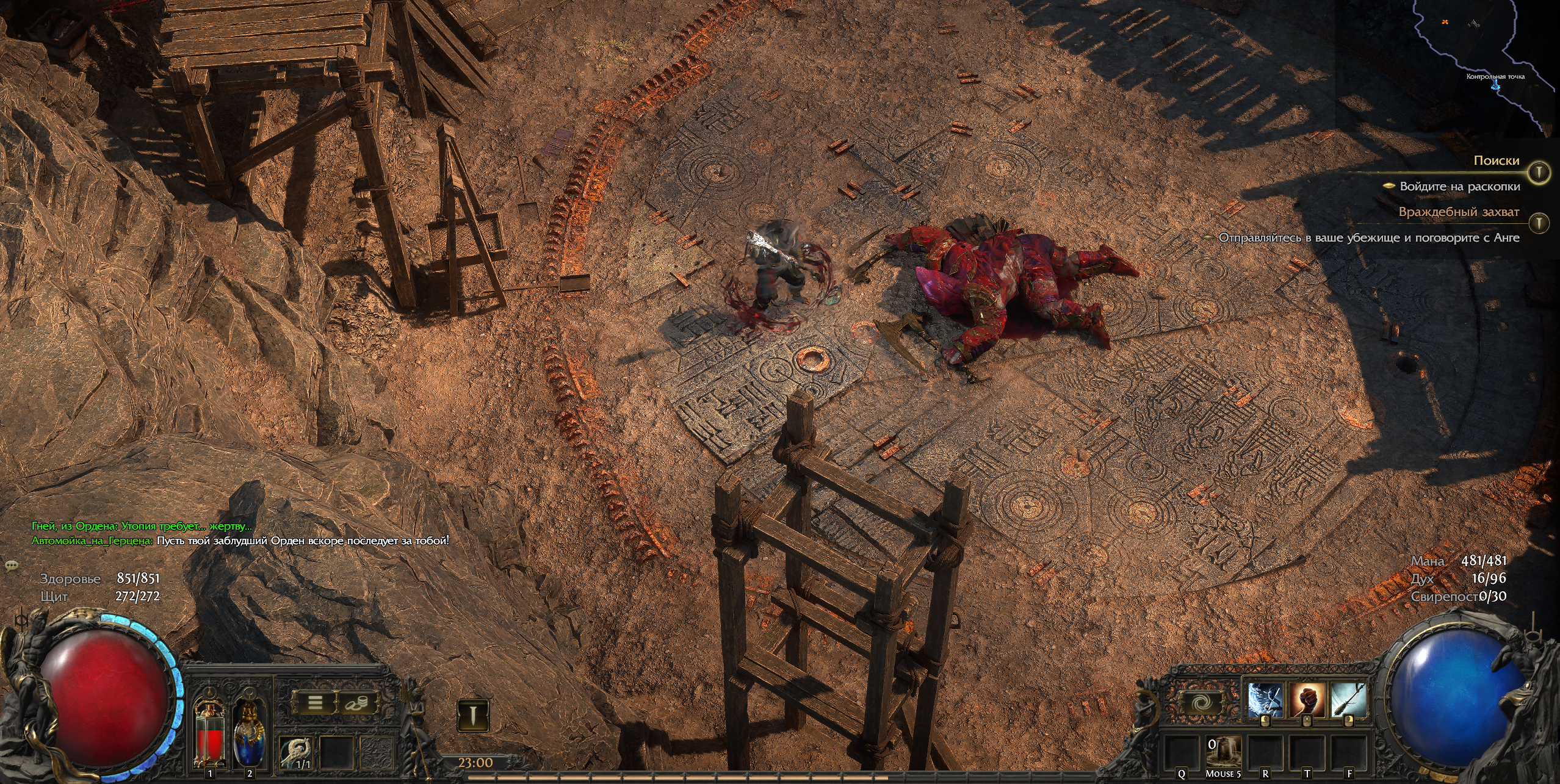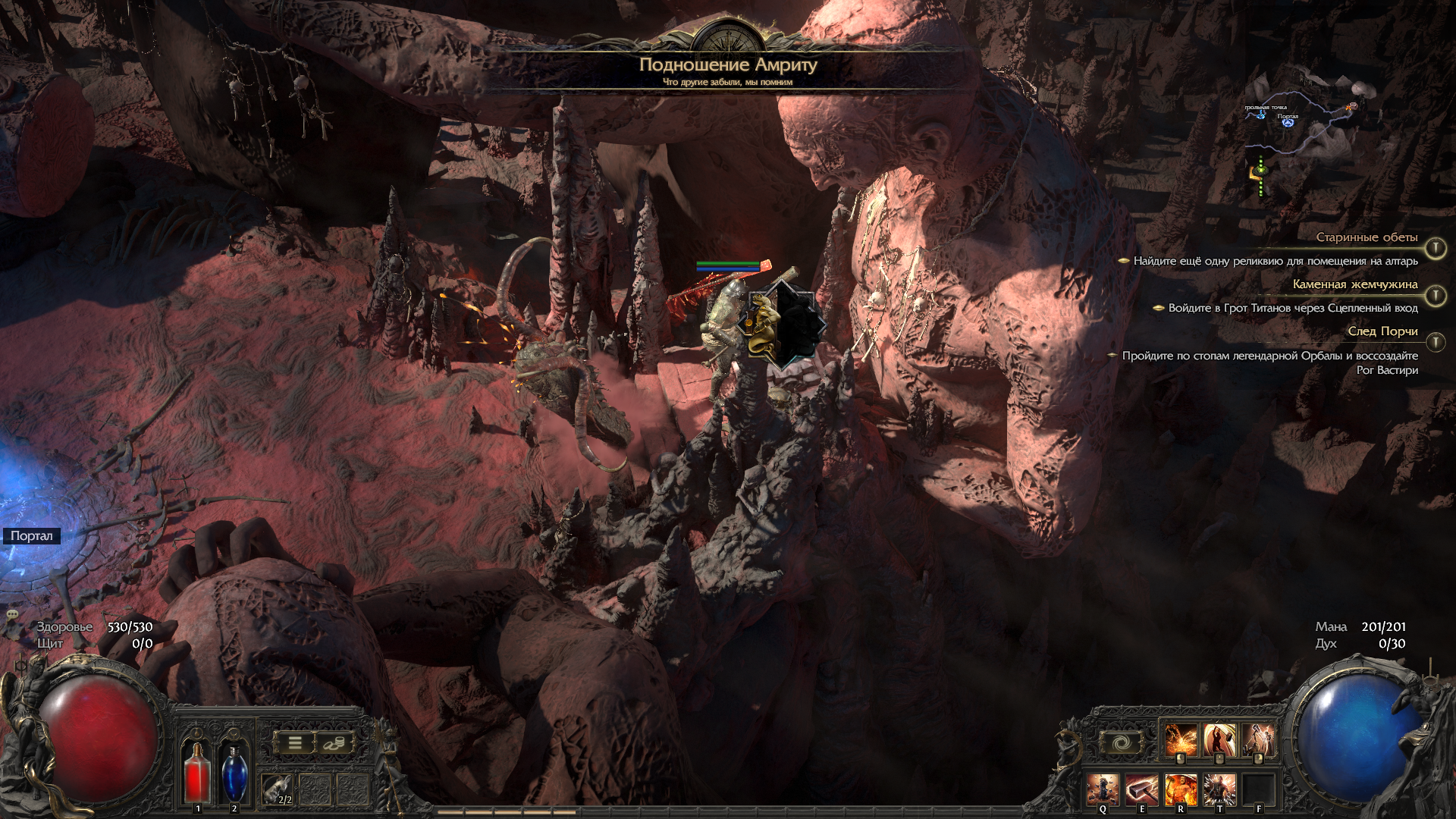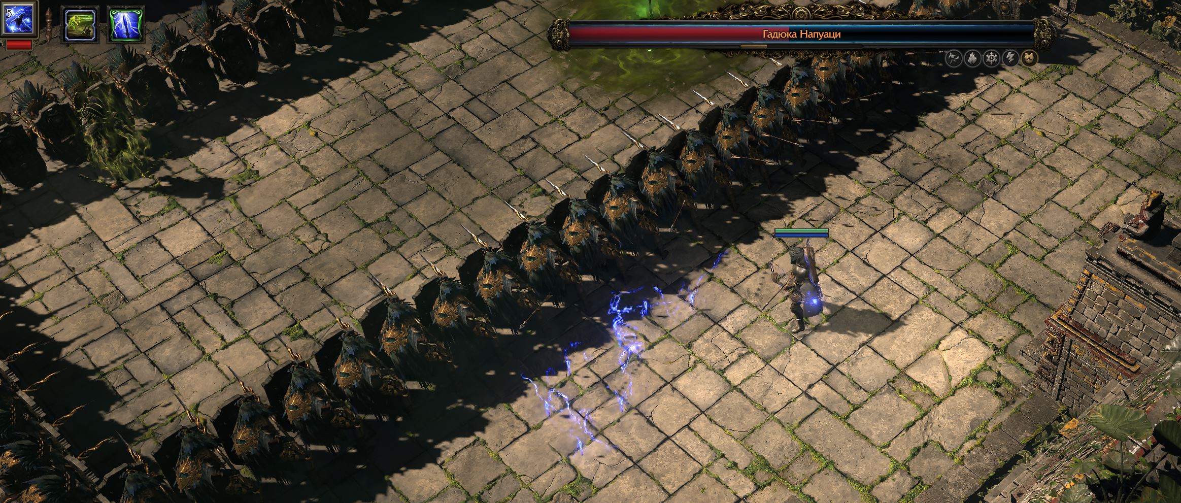 Челы чето сверху кричат и следом сразу кастуют и поддерживают заклинание -> Пробуешь направленным скиллом или аое скиллом их достать -> Не получается -> Ищешь что-то в окружении, долбаебы стоят на лесах, вспоминаешь 2 акт с химерой перед храмом Хаоса -> она падала когда каменные башенки ломались -> Ищешь что-то в окружении, нихуя -> Смотришь на босса, самый частоиспользуемый скилл КИНУТЬ КАМЕНЬ -> Осознание