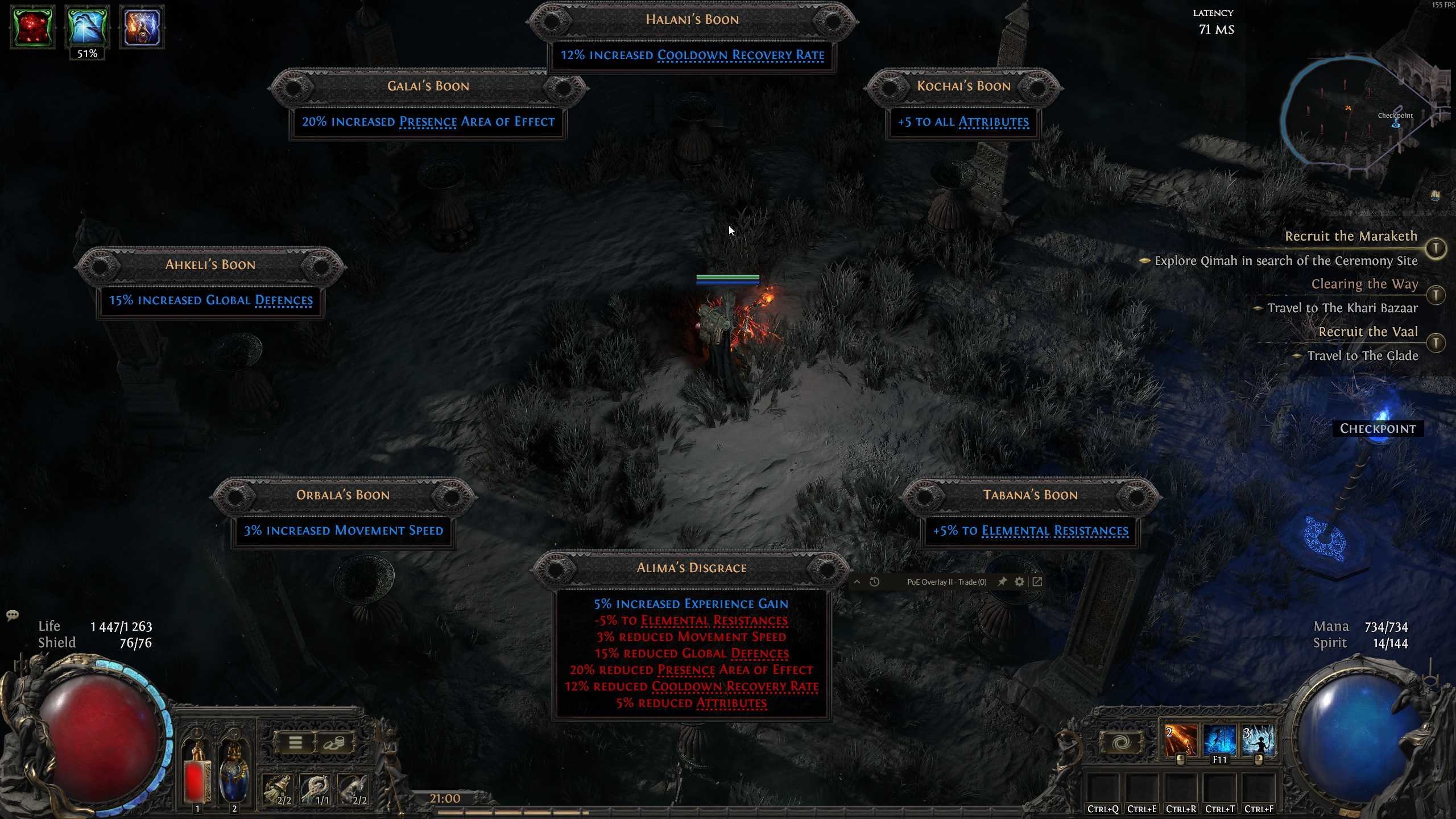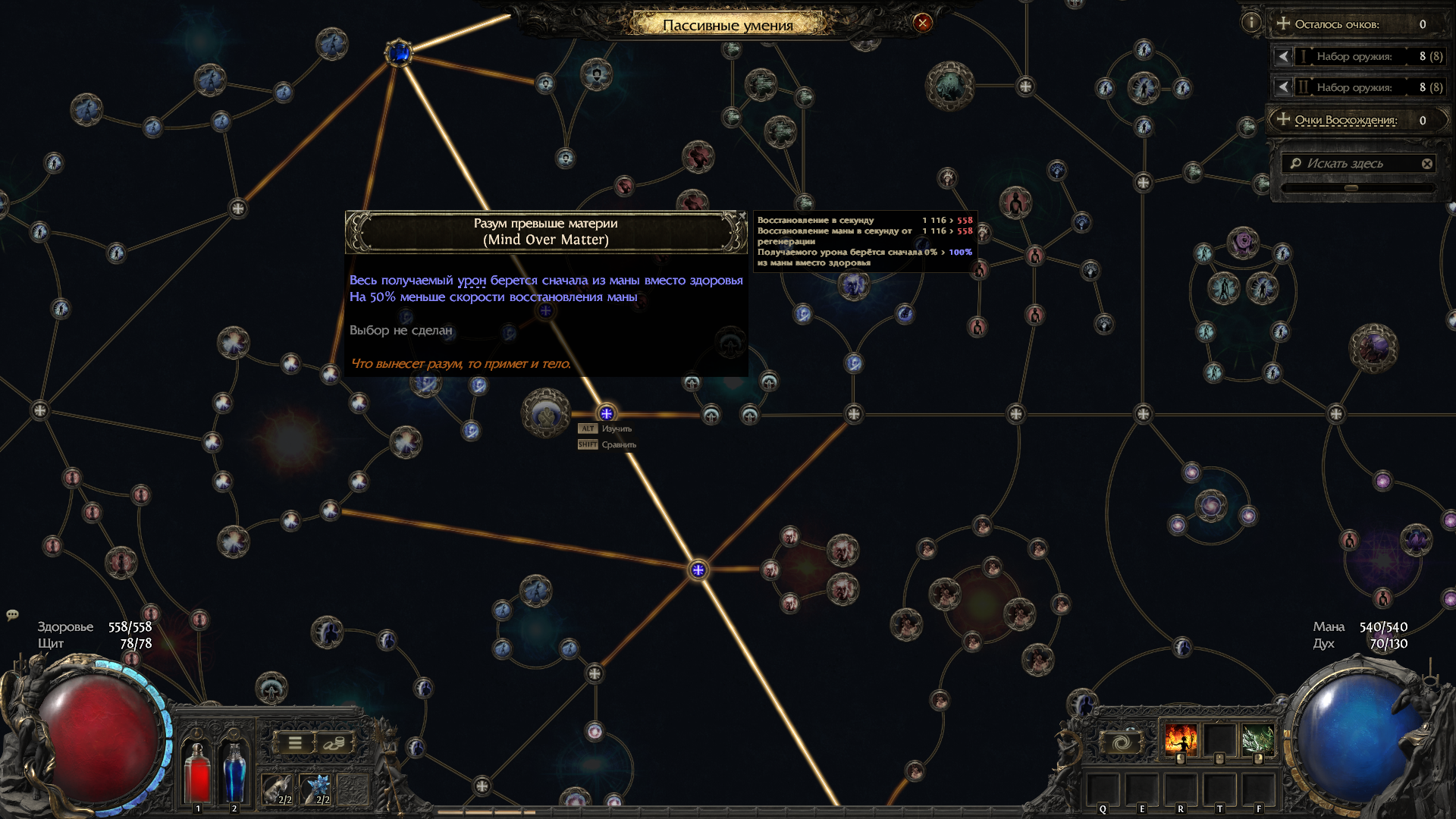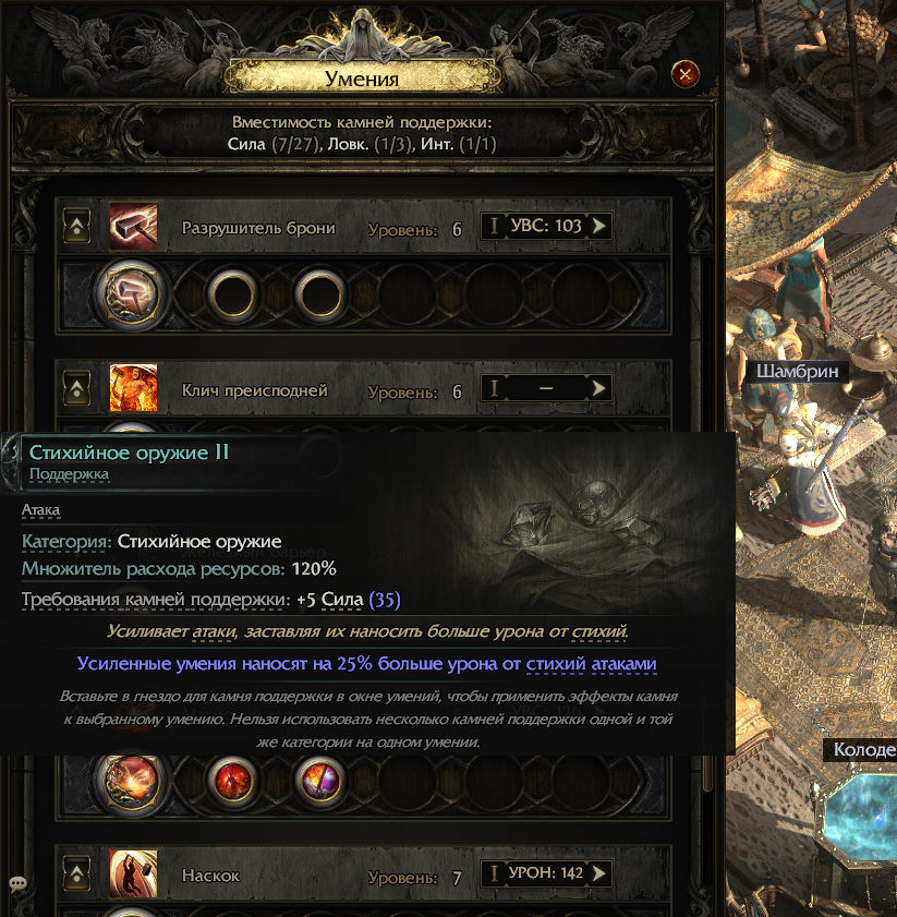 Взял +5 ко всем характеристикам вместо 5% резиста ко всем стихиям. Думал в лиге больше не будет такой нужды в характеристиках, но оказалось наоборот - нужны все три хоть в каких-то количествах.
