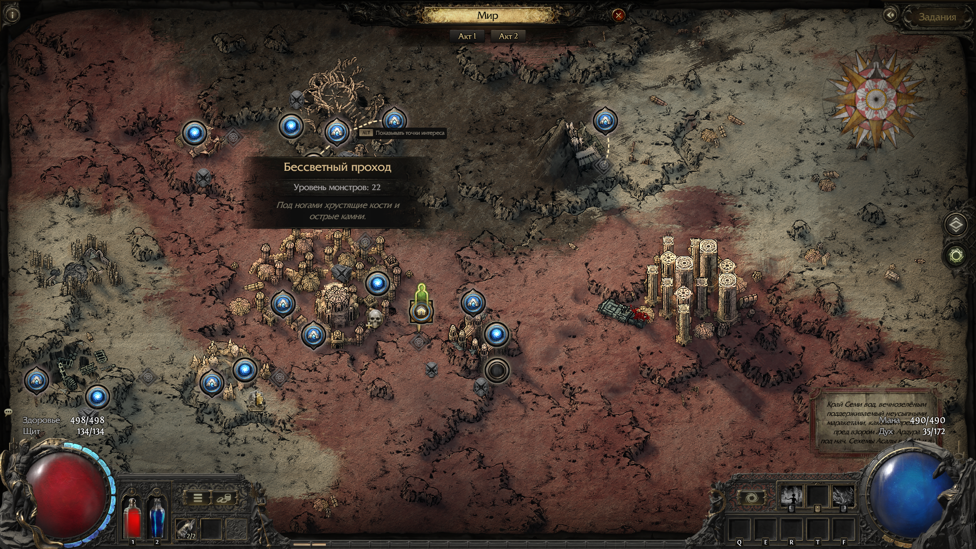 Во второй интерлюдии кажется есть важная ошибка в переводе - награды на алтарях благословений написаны не те, что даются на самом деле. Нужно все выбрать по очереди и определить по чату, что они дают, там отображается. Вообще в игре есть где посмотреть, какие бонусы в актах взяты? Из чего например мои резисты состоят.