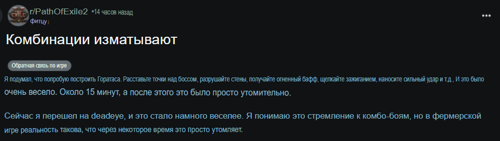Игра кал 9 месяцев, а они нихуя не пофиксили. Большая часть архетипов неиграбельна. Эндгейм - говно из жопы. Дерево пассивок - говно с условиями. Скиллы и саппорты - говно с условиями. Фу блядь, дошел до т10 ла дедайкой и удалил. Ебал рот волосатого директора и его вижн.
