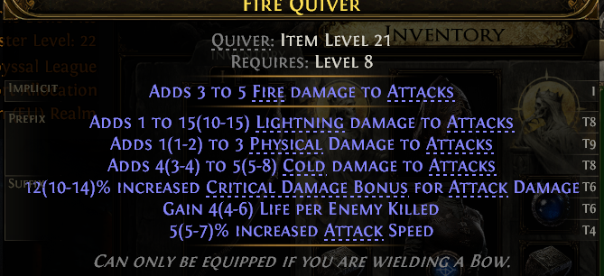 >>50173606 чем круче орб тем лучше тиры аффикса он добавляет в среднем (точнее лоу тиры не могут выпасть от более крутого орба, тир 1 лайт радиус все еще будешь ловить)