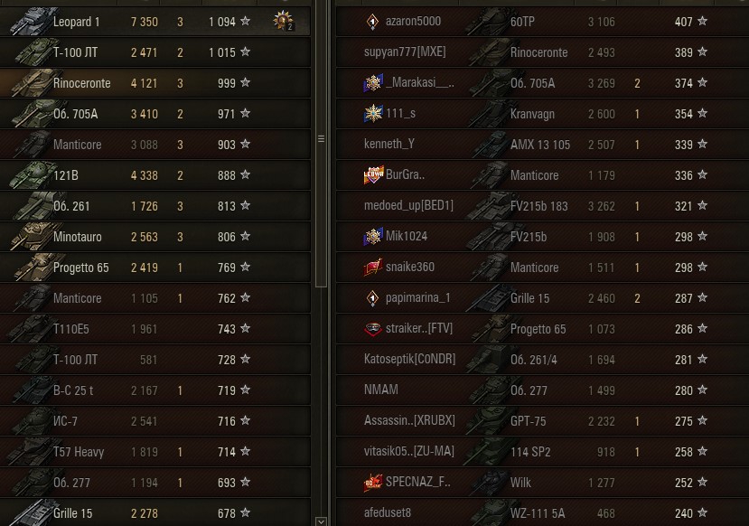 >>50180530 Чет мало, помню плохо конечно, но у нас топ 3 в районе 2к набил на каком-то тяже десятке вот это уровень, не правда ли? и топ 1 под 4к на черчеле третьем братишка, к слову, тоже на нем пробовал, а вот я на тигре первом, когда он еще говной был