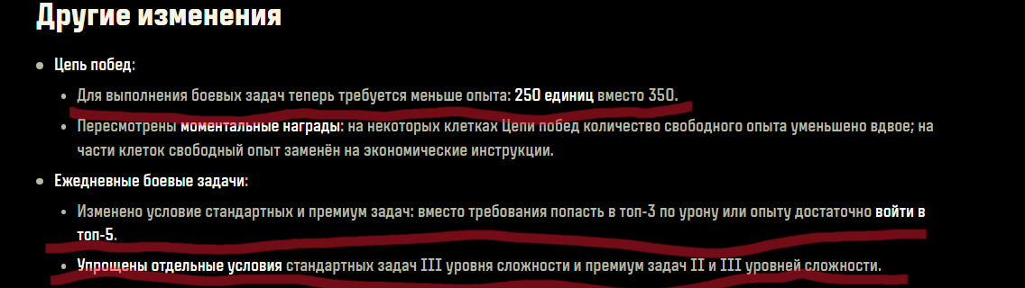Хули пиздите. Относительно апрельской легче стали. Было 2,5к престижа стало максимум 1250, было 10 фрагов стало 3 и т.д. >фрагодрочерство из задач упорно не хотят убирать. Сократили существенно не трясись, а вот задачи на 10 побед я бы тоже подрезал.