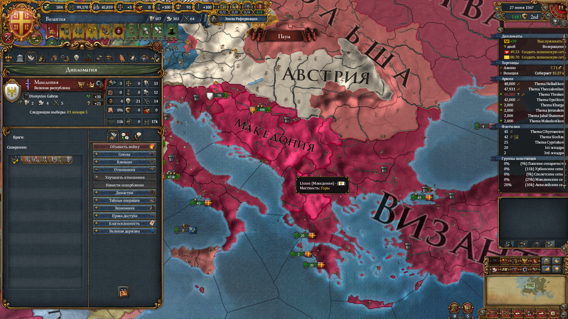 >>50175535 >Австрия совершенно пассивная и ничего не делает Тоже замечал. Даже сожрав всех южногерманских миноров она сидит афк. Максимум из Турка выбьет каких-то балканских чушек, причем в 9 из 10 случаев не Австрия инициирует эту войну, а какая-нибудь Россия, а потом австрияк сидит и терпит всю игру, хотя имеет возможности объединить Германию или взять контроль над всей Италией.