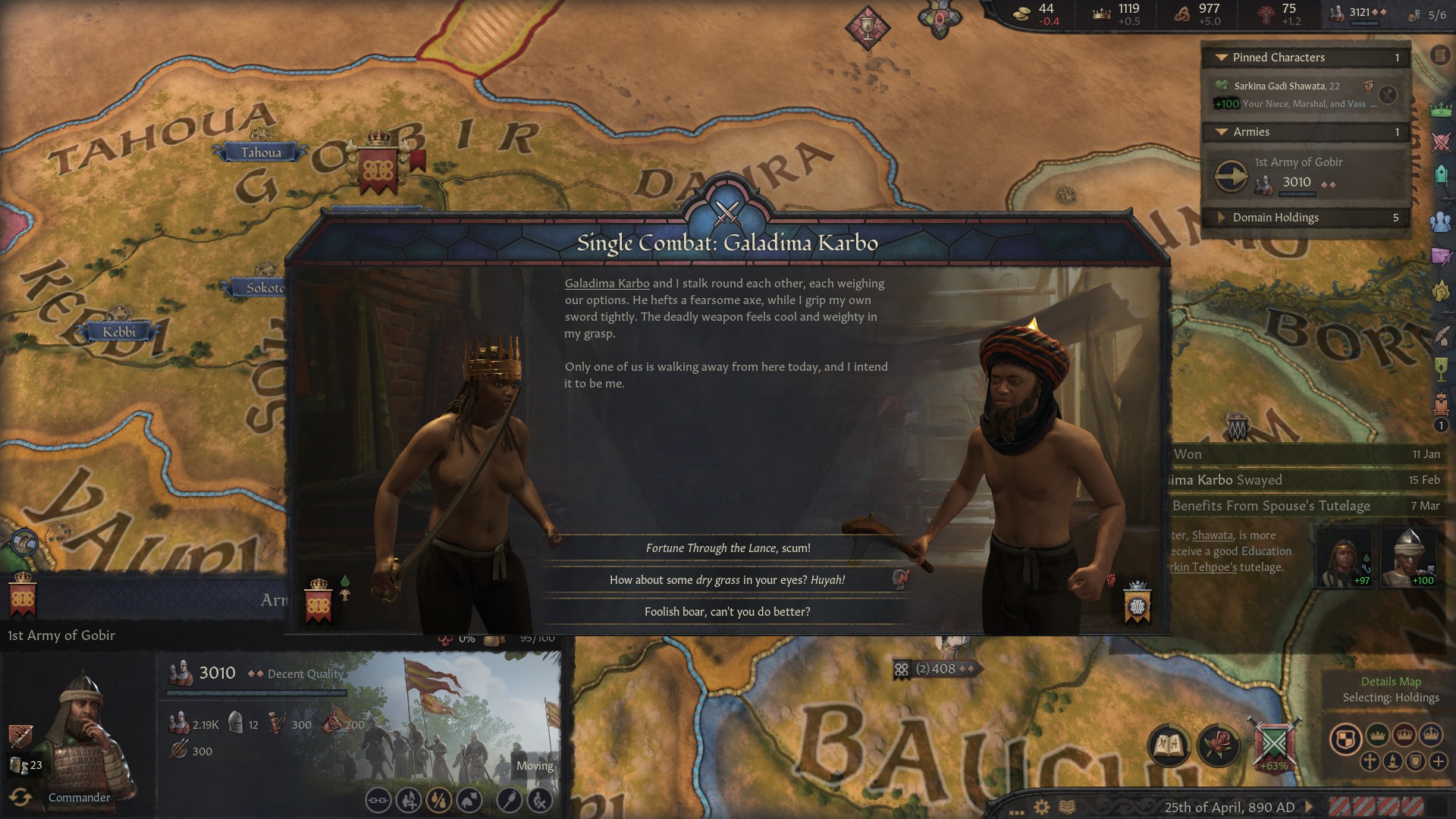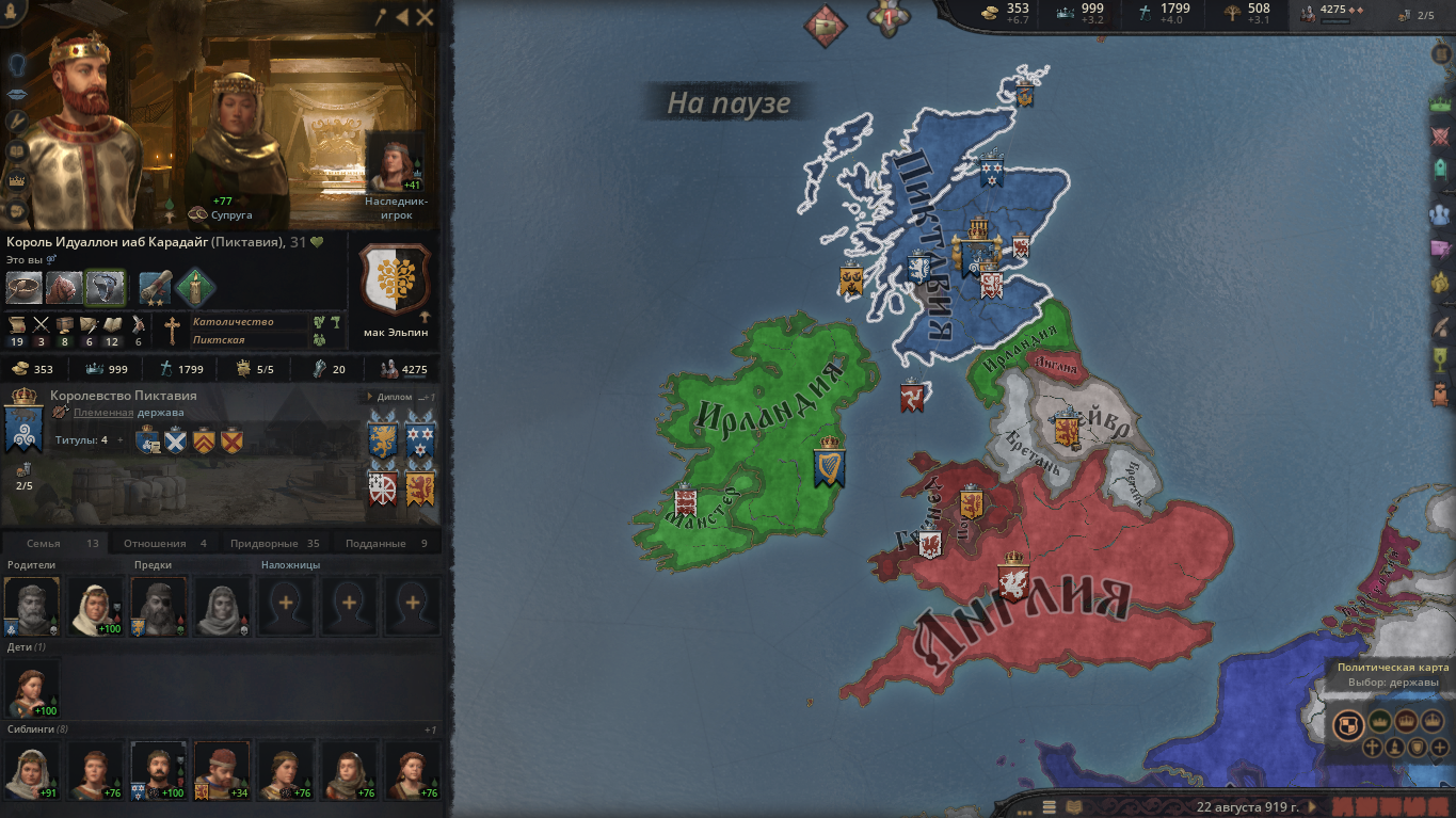 >>50178185 >>50175446 Короче, сделал еще проще, создал правителя ученого чтобы попробовать механику покупки претензий, и оказывается можно купить претензию на королевский титул и после этого вызвать короля на рэп-батл флютинг. В результате получил абсолютно нахаляву королевство, просто за один ивент с мелкого вассала с одним графством до короля нахуй, без войн и махинаций. Жаль правда за пиктов нету никаких уникальных решений, например возвращение территорий до Адрианова Вала и прочие мейк пикт грейт эгейн, или же возвращение в религию предков как с басками.