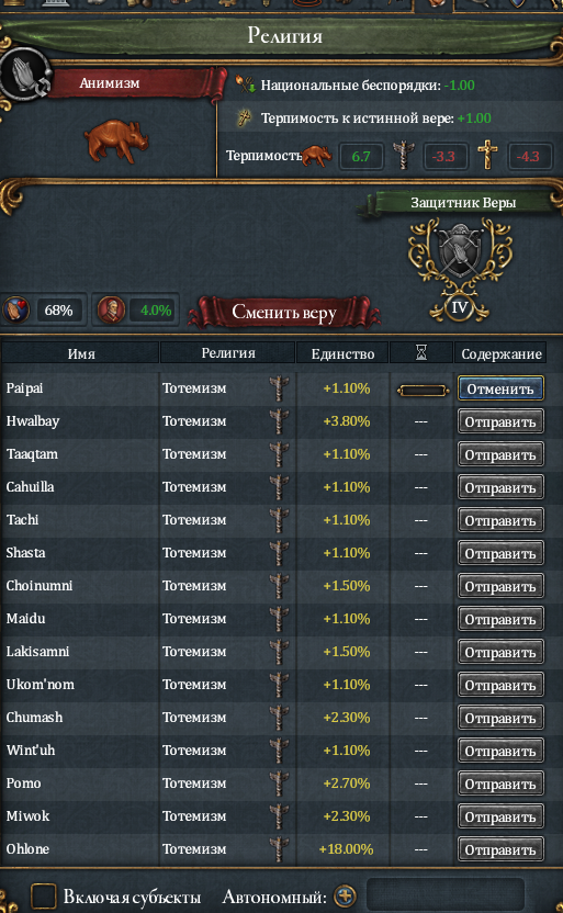 И так, Пиктавия уже в пределах бывшей Шотландии, теперь хочу сконцентрироваться на внутренних делах. Хотел спросить как можно ускорить распространение пиктской культуры на все провинции? У меня там только 3 пиктские а остальные гойдельские и кимбрийкие. А так как я идеолог пиктской культуры для построек племенной эпохи мне нужно чтобы все были пиктскими.