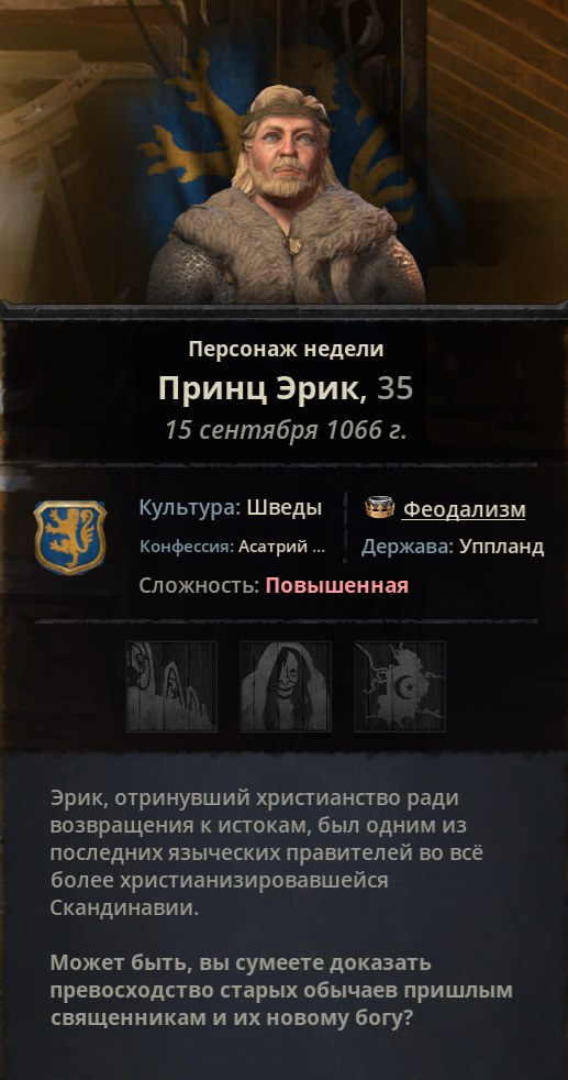 Q: На какой сложности мне рекомендуется играть и с какой страны начинать? A: Рекомендуется начинать со средней сложности сильной страной. • EU4 — Кастилия, Османы, Франция; • Victoria 3 — Великобритания, США; Франция; • HOI4 — США, Италия; • IR — Рим, диадохи; A: CK3 в противоположность другим играм линейки, наоборот стоит начинать с самых низов, дабы понять все аспекты игры. Самый оптимальный старт с минимальным риском слить партию — один из Ирландских графов, желательно, с 1066-го года, дабы не застать набеги викингов, которые доставят немало хлопот новичку.