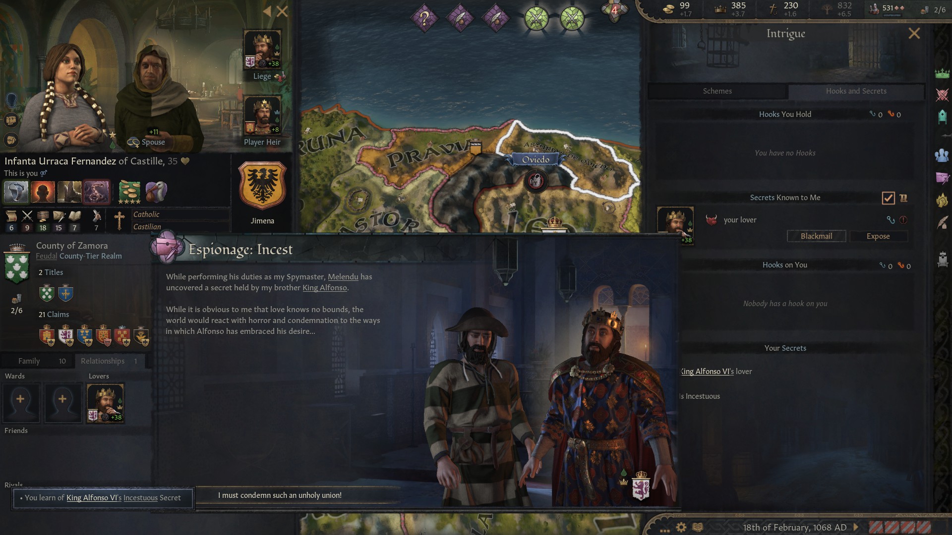 Ебать какой пиздец начался с новым королем, мало того что я лишился 3/4 всех владений которые тупо распилились между родственниками так еще и получил уведомление что потеряю землю если один из вассалов умрет, этот вассал мой сводный брат-наебыш от наложницы который болен чехоткой и если подохнет то земля передет его пиздючке которая вообще правитель другого государства, и тоже больна чехоткой. То есть если они оба сдохнут то их земли достануться мимокрокам или отойдут ко мне?