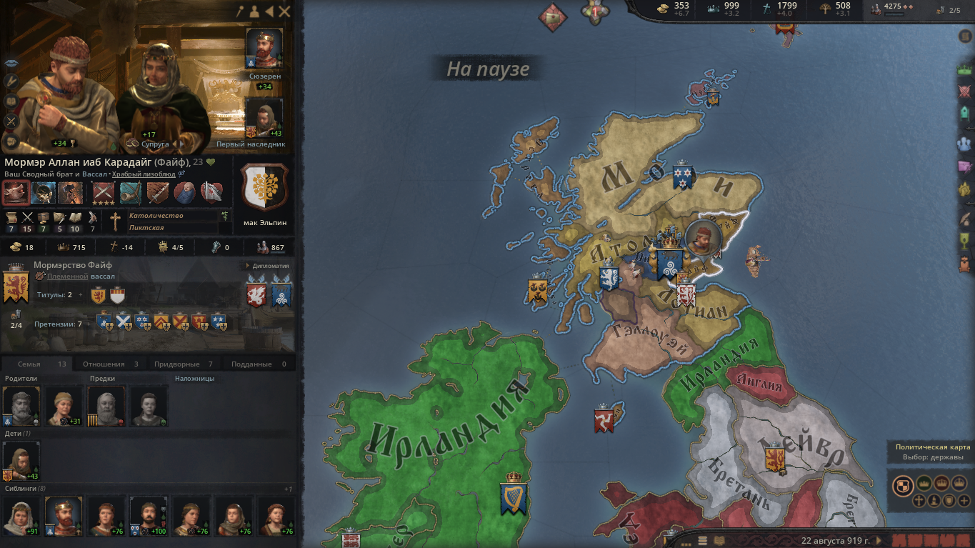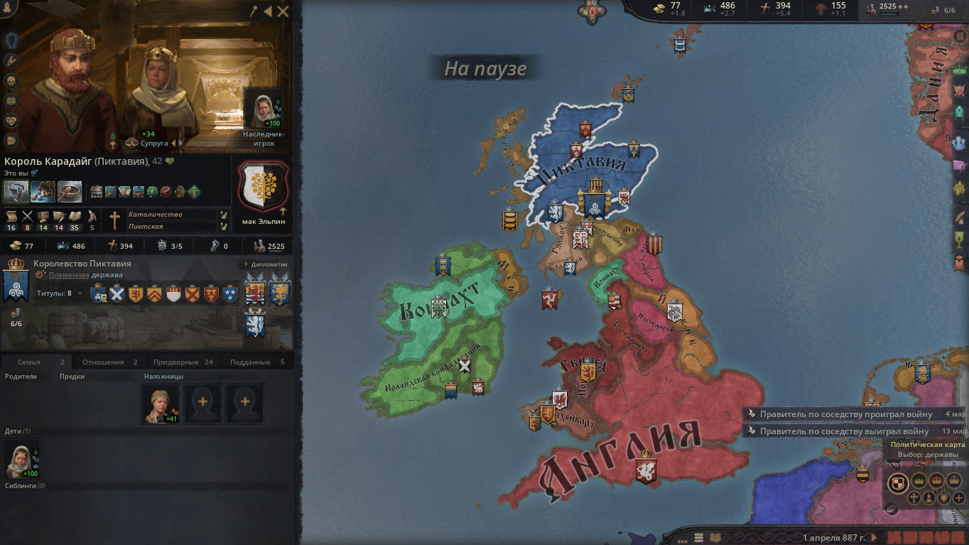 Рельно ли за интригана захватить корону изнутри государства? Играю как вассал Константина из Альбы, сейчас в ранге могучего вассала, тайный советник при дворе и монарх-соправитель. И вот тут самое интересное, все южнее Шотландии уже захватил Альфред завоеватель, а у меня два сейва, один где Константин тоже стал завоевателем а второй где не стал. По статам Альфред слишком мощный по сравнению с Константином но армии у него меньше, и еще Константин-завоеватель сразу захватывает мелкие государства на Севере которые я хочу сам завоевать и стать еще более жирным вассалом. Но как мне поступить? Дождаться пока Альфред его размотает и начать войну за корону Шотландии? Или продолжать быть подсосом и паралельно увеличивать размер владений, а королем стать через выборы или еще какие-то фичи?